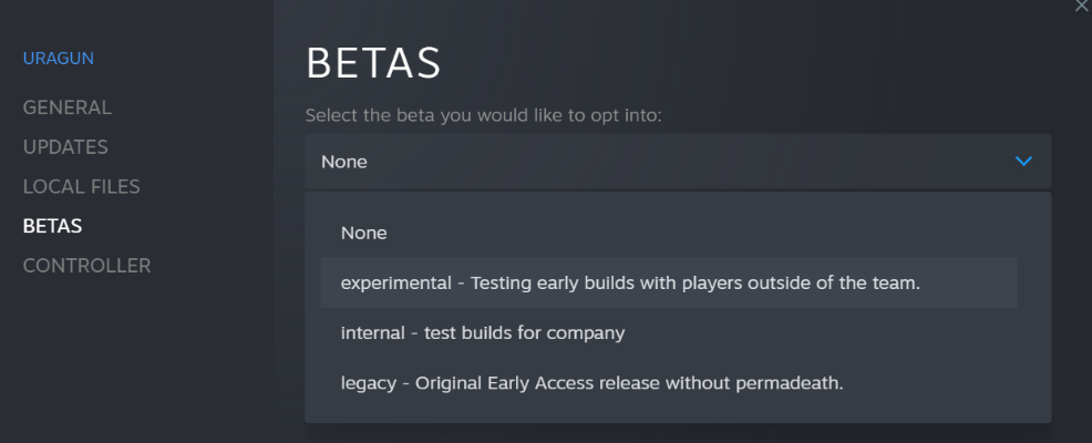 Select experimental, close the window and Uragun will update to this version.