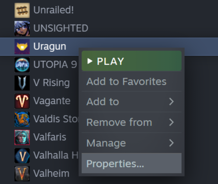 Right click on Uragun on your Library and go to Properties.