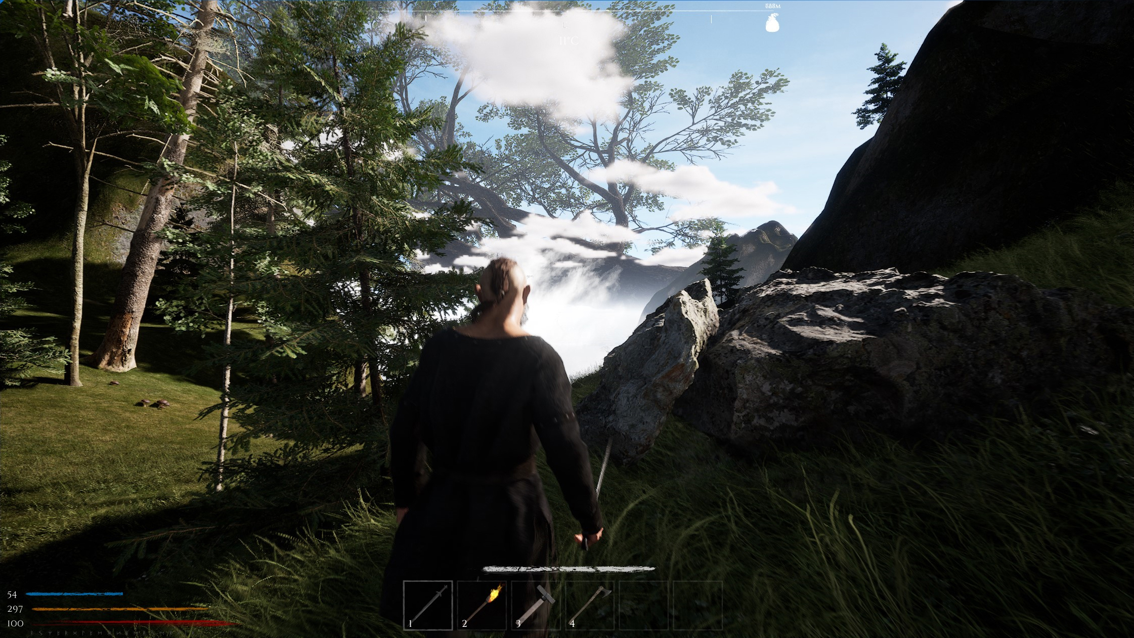 Enhanced realism of mountain material in specific locations. Implemented landscape improvements for a more natural appearance. Reduced the steepness of the initial area. Added the first Yggdrasil branch. Incorporated more animated fog.