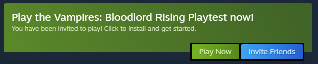 The invite friends feature makes it easy to have your friends participate in the play test, too: simply click ‘Invite Friends’ on the [url=https://store.steampowered.com/app/2191500/Vampires_Bloodlord_Rising/]store page [/url], next to the Play Now button, and invite up to 2 friends directly from your Steam friends list – and now your favorite thralls can rule the shadows of Sangovia.