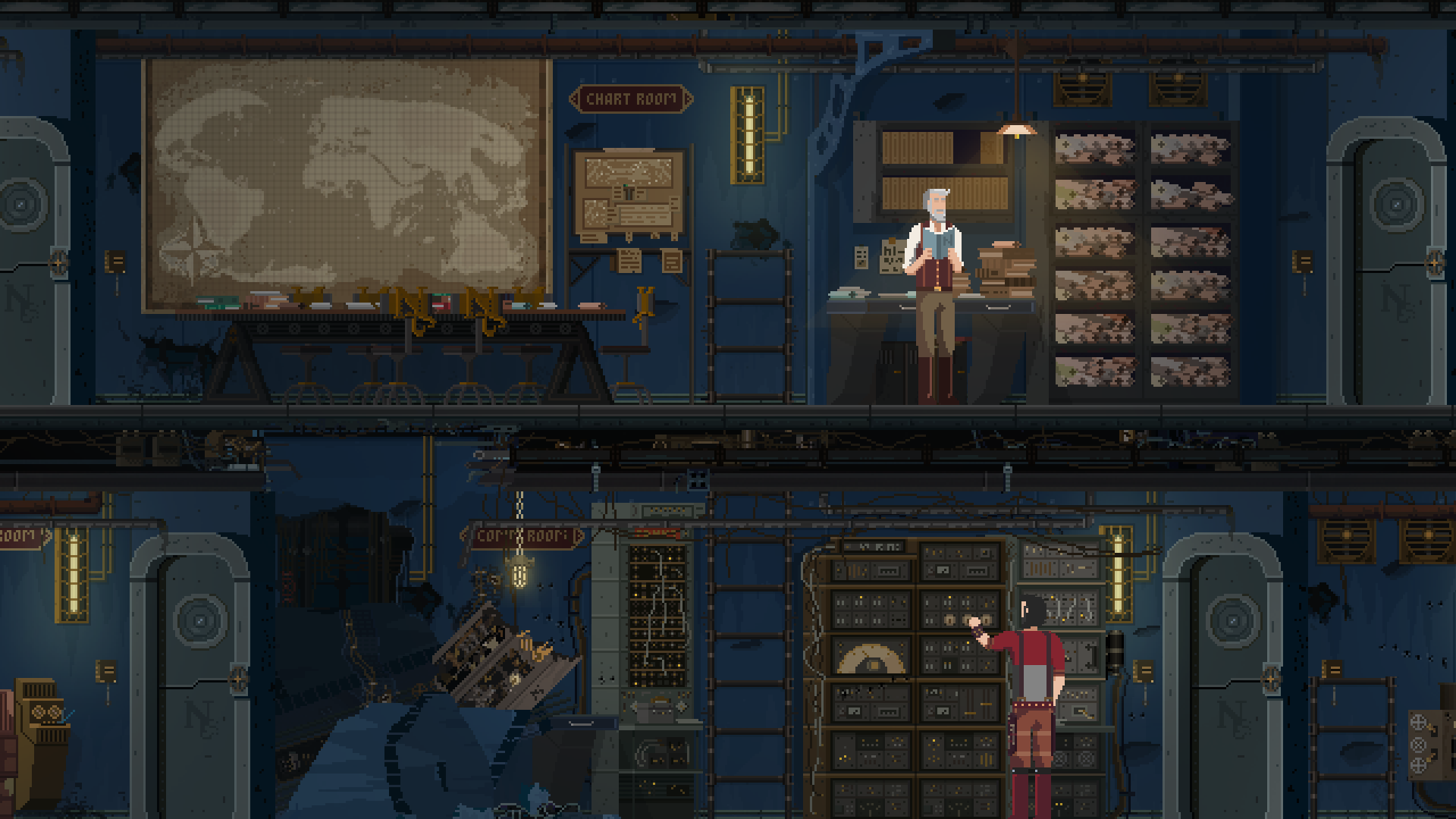 - [b]No Ruin Left Unturned:[/b] Journey through a steampunk-esque world brought to life by detailed pixel art, told through a wide range of environments from the Nautilus’ dark corridors to ancient Atlantean ruins