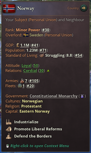 The Country details panel has gotten a slight tweak to the layout, which makes it possible to see both the Country’s Attitude towards you, and their current Strategies at a glance. Since these factors are important in the AI’s decision making process, having them more easily accessible should help make a Country’s behavior more comprehensible.