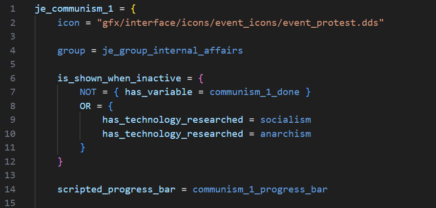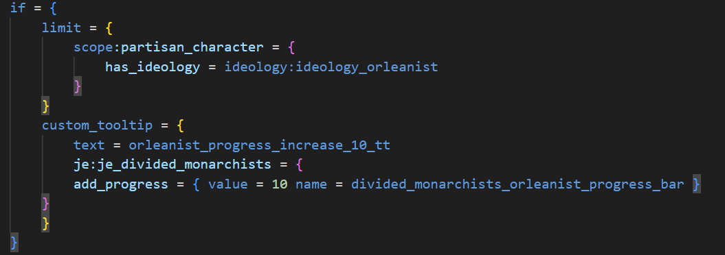 Our scripting language is the basis of all of the ingame content in Victoria 3. This means that every script functionality that we use in making game content is also usable by modders. As well as triggers and effects which interface with new features such as power blocs and building ownership, 1.7 and Sphere of Influence add several novel functionalities for modders. These include our new scripted progress bar system for journal entries.