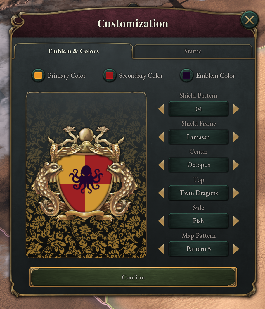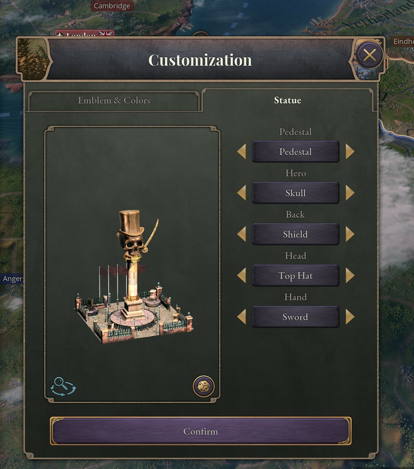 When a player creates a new Power Bloc they will be able to create and customize their own Emblem and Statues, these visual elements will represent your Power Bloc in both interface and in the cities.