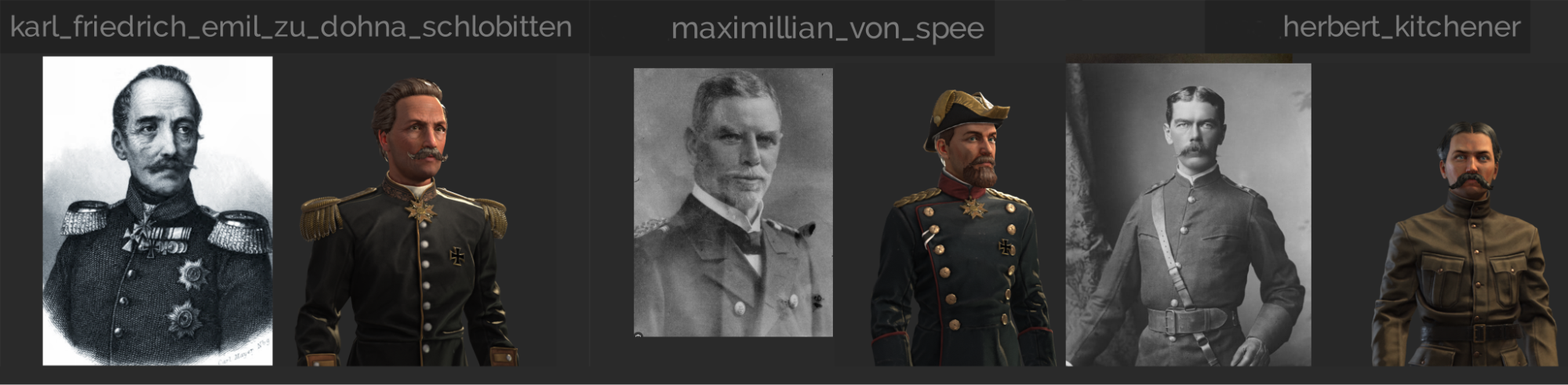 Aside from the paid characters added with The Great Game we’re also adding a ton of free historical character appearances. These were created by Timothy "Galactic Cactus" Hicks, who made and later donated the Americas Character DNA mod to us for inclusion in the base game for Update 1.5. The 85 characters he provided for the free update alongside Sphere of Influence (full list in the upcoming changelog) were created in collaboration with him as a contractor. We hope that this sort of collaboration is something we can do more of in the future and will be creating some guidelines and benchmarks for interested community members.