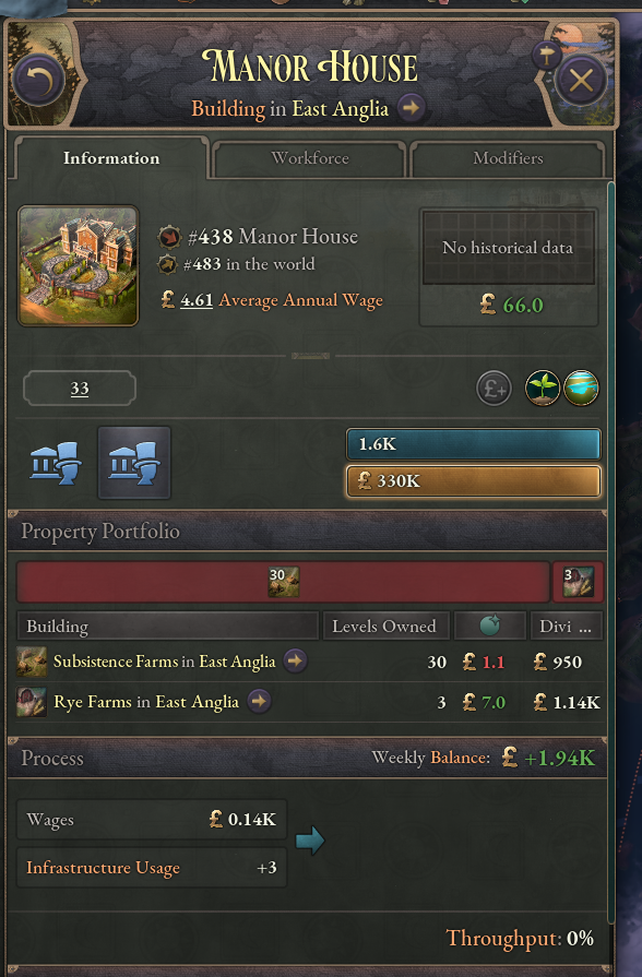 The mechanics for Building Ownership are completely revised in the 1.7 update so that the owners of a building no longer have to work in that building, or even live in the same state - London-based Capitalists can now own buildings all over the world, and buildings can be selectively nationalized or privatized and put up for sale to interested investors, with the available options being restricted by which economic system a country is operating under. Additionally, buildings can now potentially have a different owner for each of its levels. [i]Instead of hanging around on the farms doing what could (God forbid) be considered ‘working’, the Aristocrats of East Anglia now stay in their Manor Houses and enjoy the proper leisurely pursuits of a countryside gentleman or gentlewoman[/i]