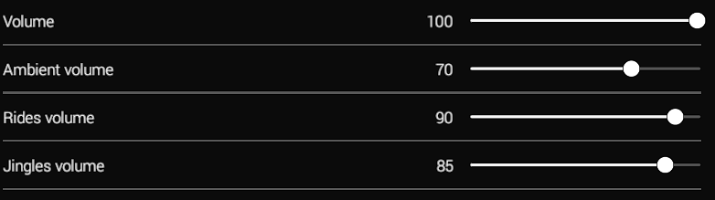 We reworked the engine sounds and implemented more sound variations including wind noises and creaking noises. Furthermore we're giving the player the opportunity to control the volume ratios for the rides, the jingles and the ambient sounds.