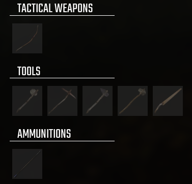 - Crafted Bow and arrow + stone arrows