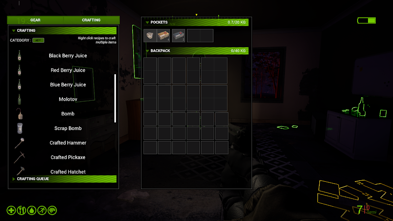 The menu interactivity is now improved, allowing better sorting, dropping rotating and placing capabilities, stacking certain resources and even bags or containers that can help compartmentalize your inventory even better and easier.