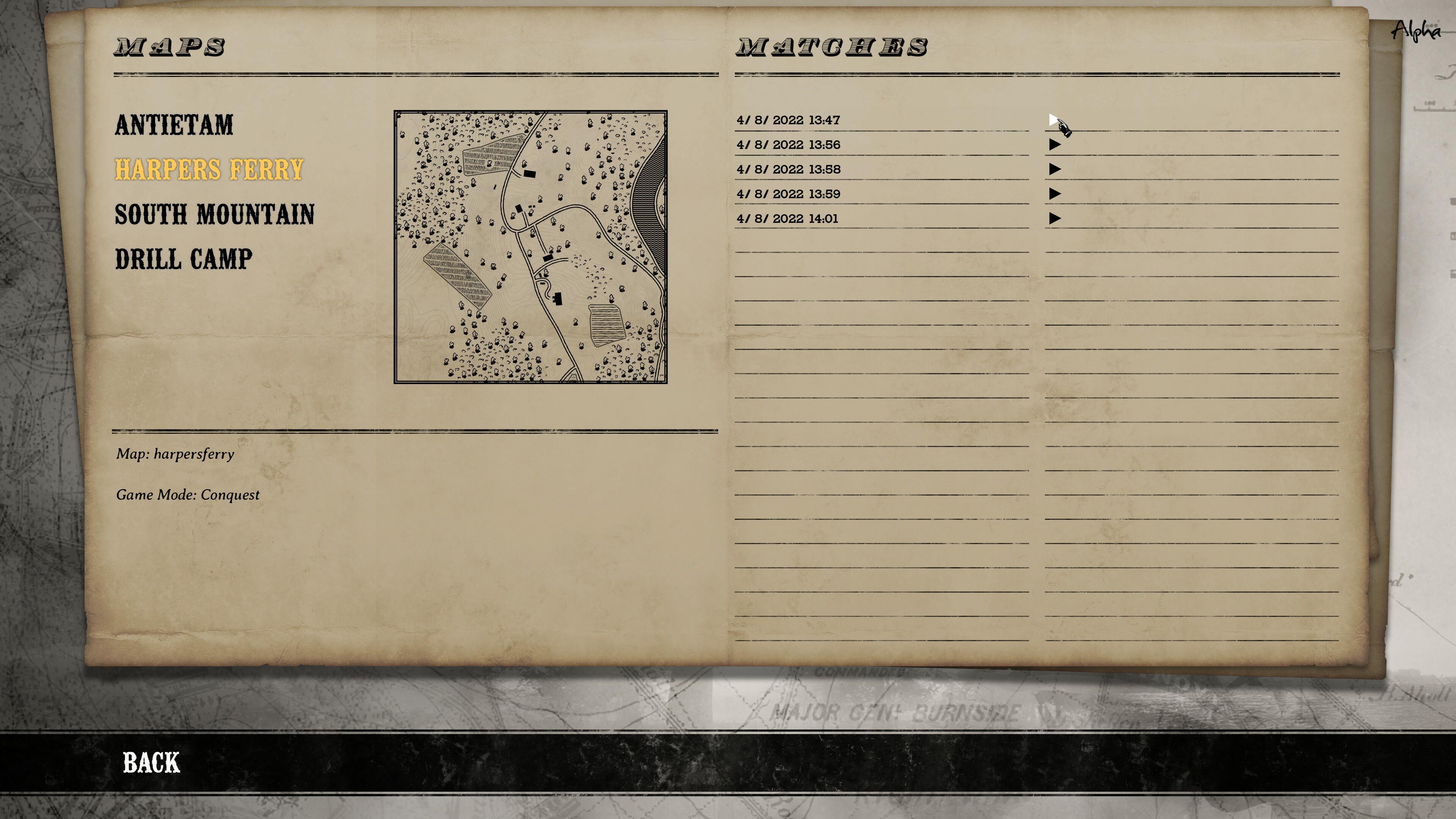 - Added 4 new Conquest areas on Harpers Ferry: River Town, Outskirts, Overlook and Valley.