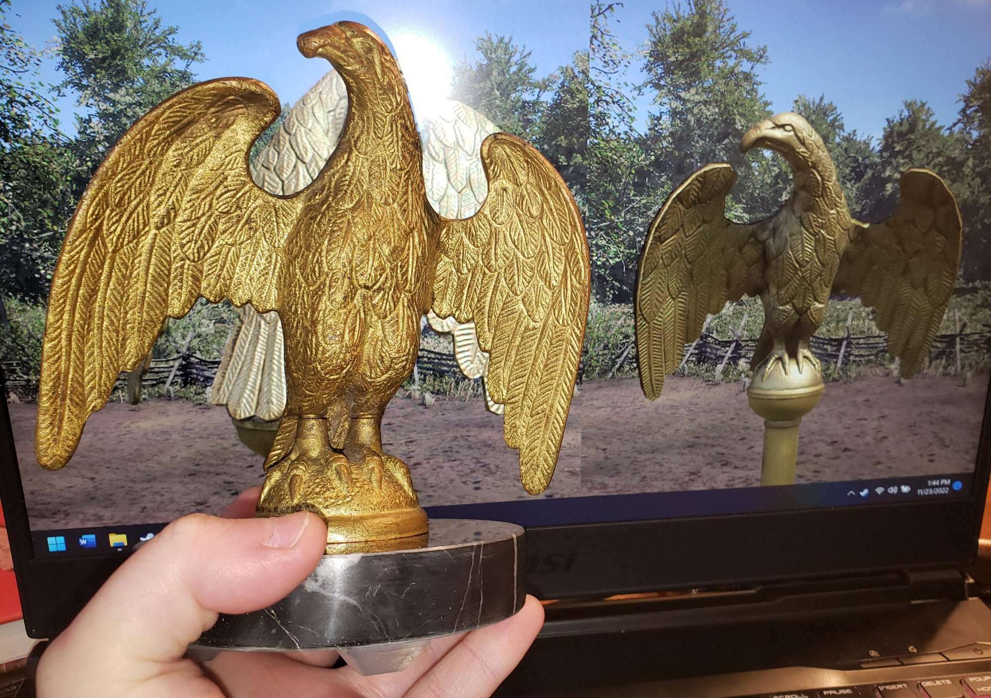 [i]Above is an Eagle finial, owned by Campfire Games Historical Artist and battle flag connoisseur, Bradley and the eagle’s digital self now featured in the game.[/i]