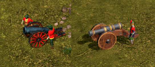 - Cannon: projectile dispersion decreased from 16% to 13%, requires 2 Population units, movement speed decreased from 30 to 25, price decreased from 250 to 200 metal