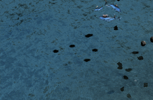 We continue to improve the water rendering. You can now see scattering waves from projectiles hitting the water