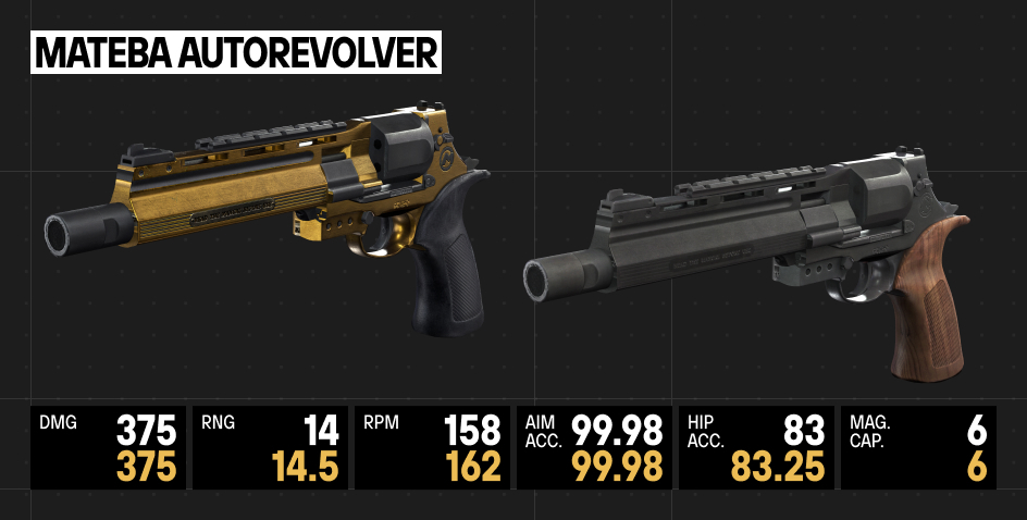 Mateba Autorevolver: The weapon has been adjusted to meet the current meta's standards.