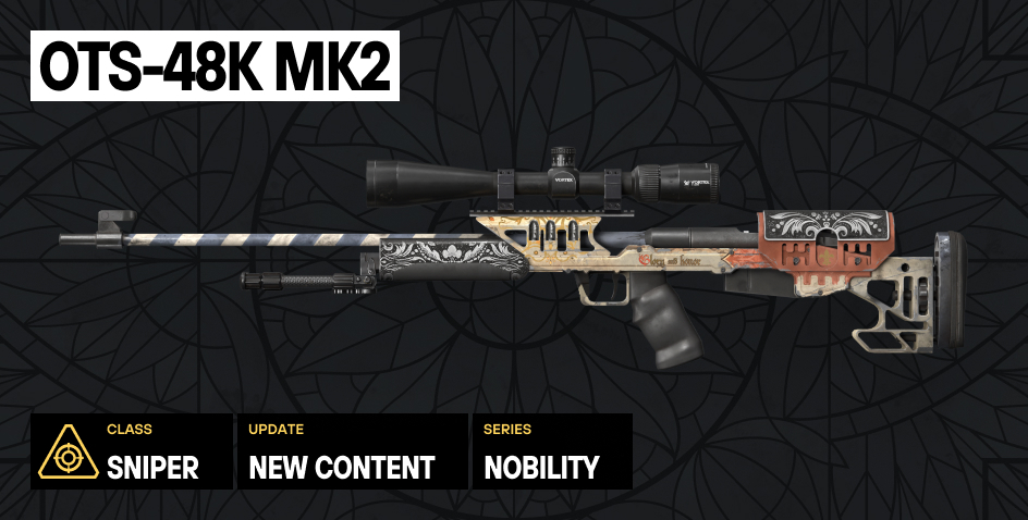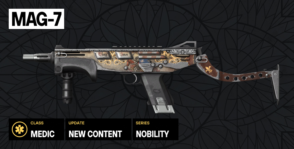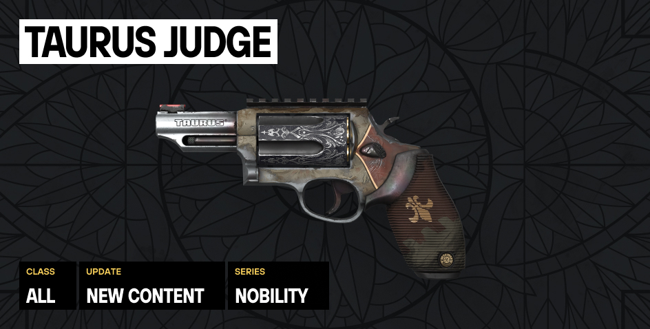 [p align="start"]Forge your mark on the battlefield! The Nobility series transforms Taurus Judge, OTs-48K MK2, SCAR-L PDW, MAG-7, STK CMCR, and Scout Knife into instruments of valor; every shot and strike means courage, skill, and honor.[/p] [carousel autoadvance=true]