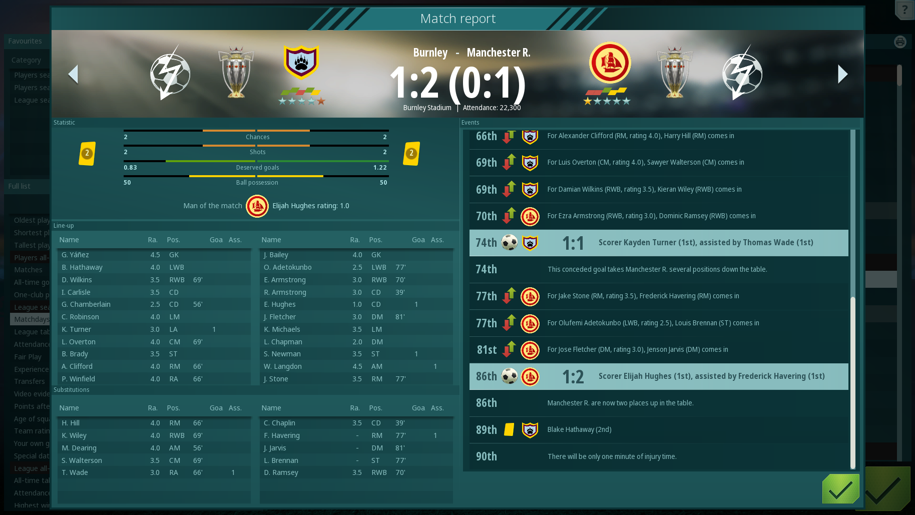- Vergrößerter Spielbericht, jetzt auch mit Derbys, Liga, Aufstellungen, Toren, Vorlagen und Noten