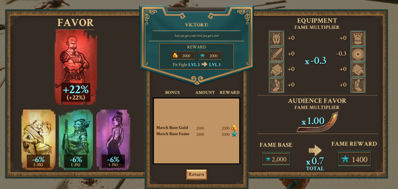 - Fame Equipment now factors into fame multiplier calculation. Big change to overall fame gain! Victory UI has been updated to show this report.