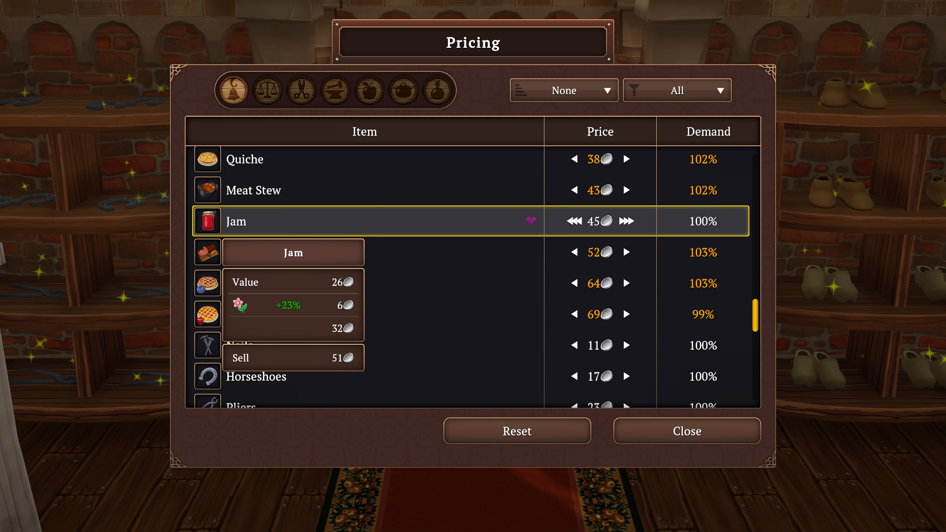 The frugal shopkeepers among you enjoy counting coins and making sure the numbers add up. To help you keep track of income and expenses, you can now open the ledger menu and see where the coins are coming from and may confront you on your spending habits.