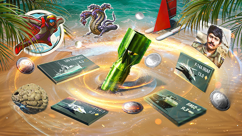 The “Explosive Watermelon” contains vehicles and camouflages, decals and decorations, player icons from previous summer events and events from the new cycle from June to August inclusive, as well as useful consumable items: boosters, universal backups, wagers and orders. Some items from past events are appearing as coupons for the first time, and you’ll be able to trade them on the Market! [quote]The Explosive Watermelon costs 60,000 Silver Lions.[/quote] [hr][/hr]
