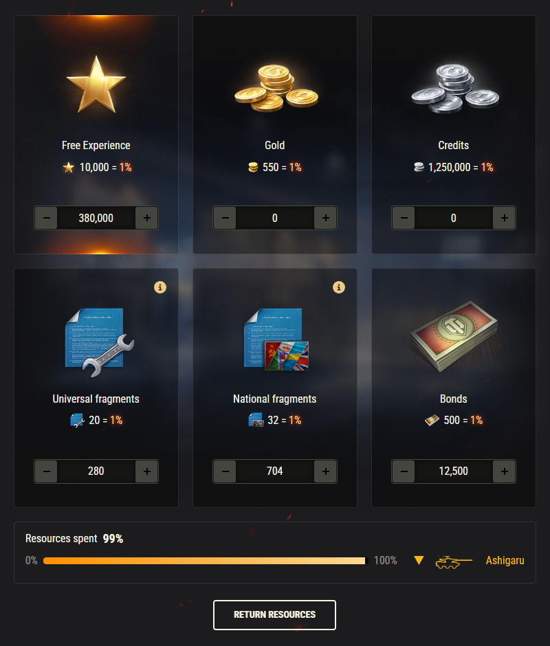 [b]Invest Resources:[/b] Use in-game resources like blueprint fragments, Free XP, credits, gold, and bonds to construct the Ashigaru.