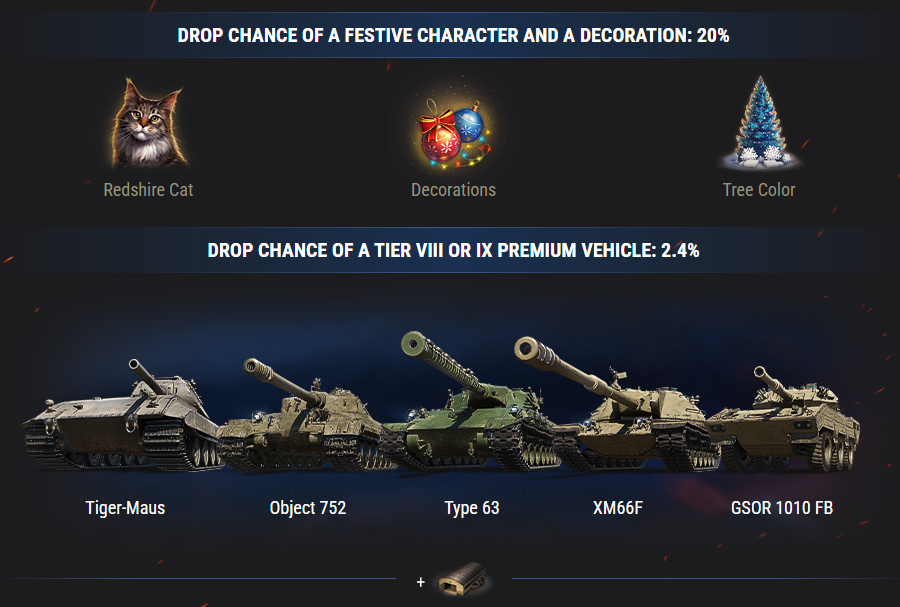 Holiday Ops 2024 brings a festive mood and wonderful gifts. Max out your holiday spirit by getting even more presents for yourself and your friends from Large Boxes! On top of guaranteed gold, they may contain brand-new Premium vehicles, 3D styles, and more. Scroll down for details!