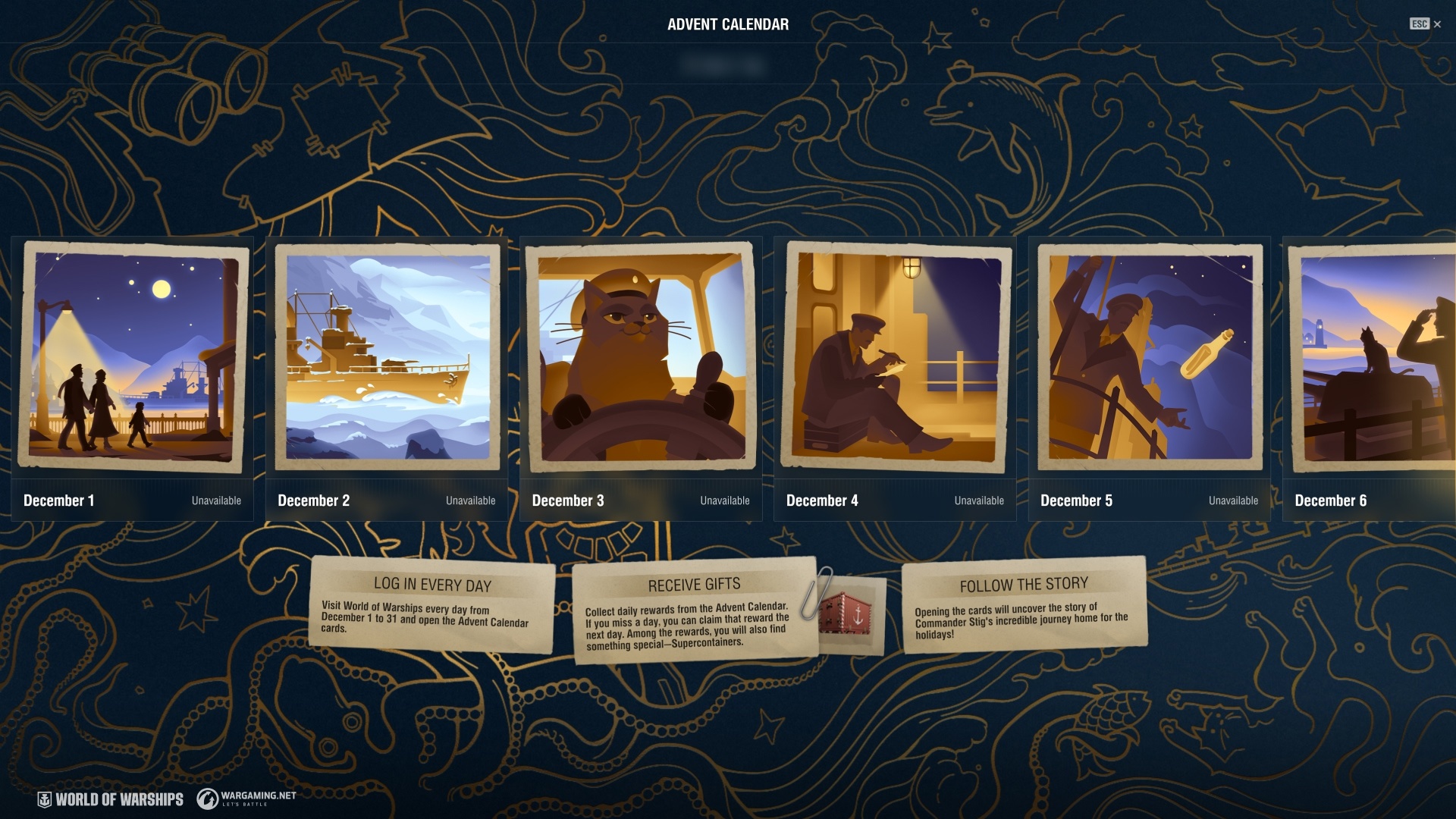 - [u]Chapter 1 – Distant Shores:[/u] [b]First progression[/b] line rewards include 8x Santa’s Gift containers, Westbound permanent camouflage, new Icebreaker enemy destruction effect, and Commander Stig Lundgren (nationless) as the final reward.