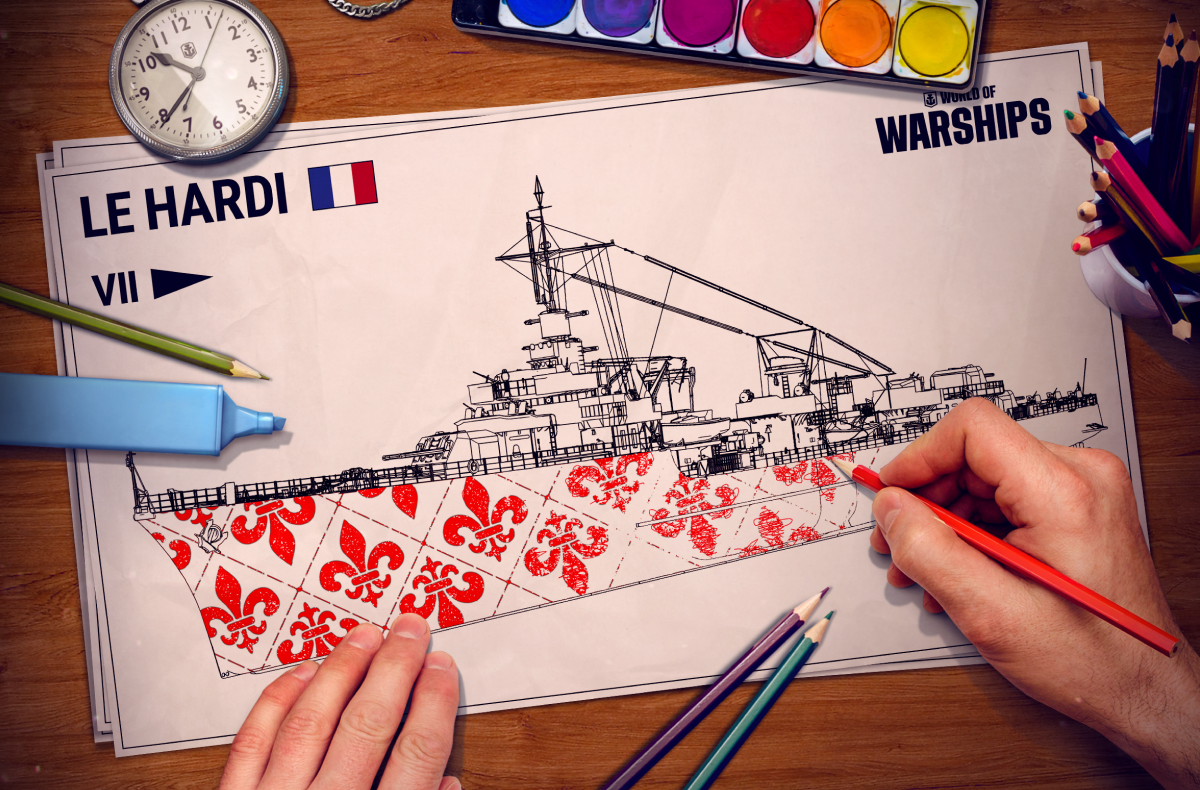 Show off your artistic talents in the latest camouflage design contest! This time, the subject is upcoming French destroyer [b]Le Hardi[/b]. Just visit the link below, download a blank ship template, and paint/draw/design to your heart's content!