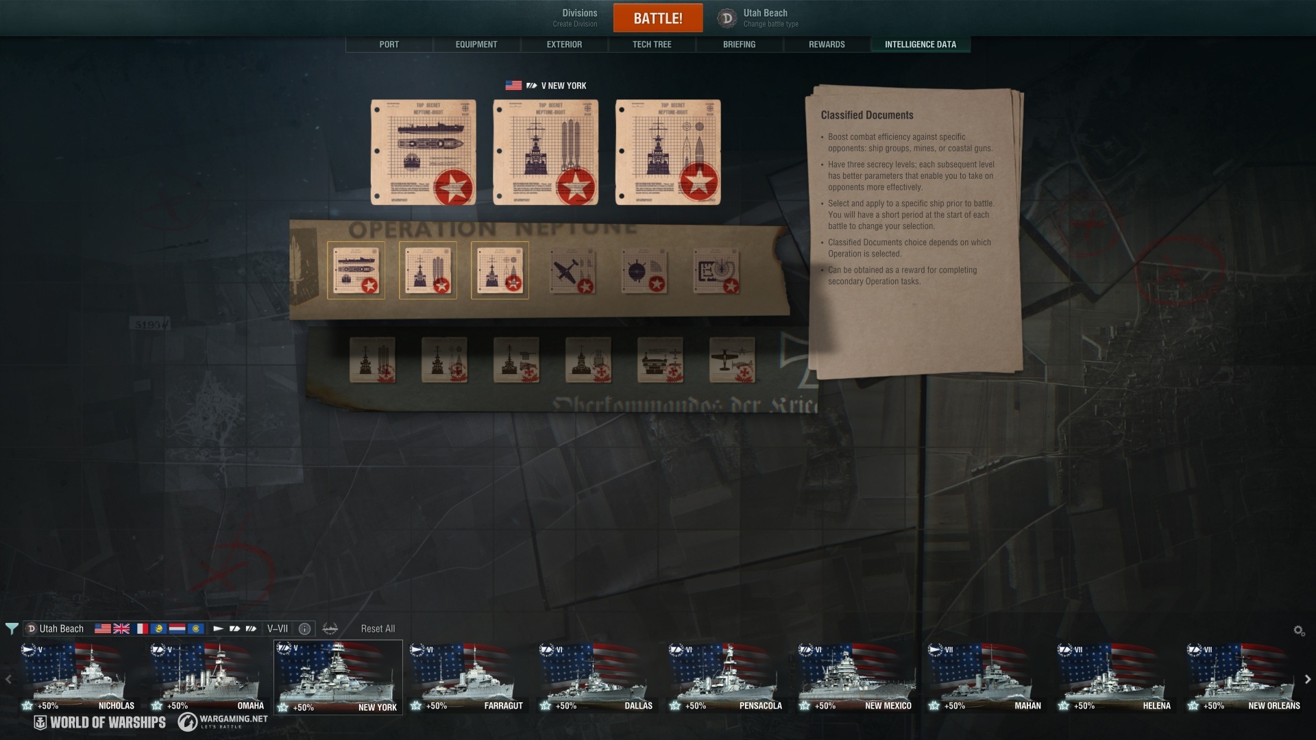 As part of the Operations commemorating D-Day, we're introducing a special event mechanic called "Classified Documents." These provide bonuses against specific enemy types, and they come in three different levels: Confidential, Secret, and Top Secret, with each level providing additional bonuses.