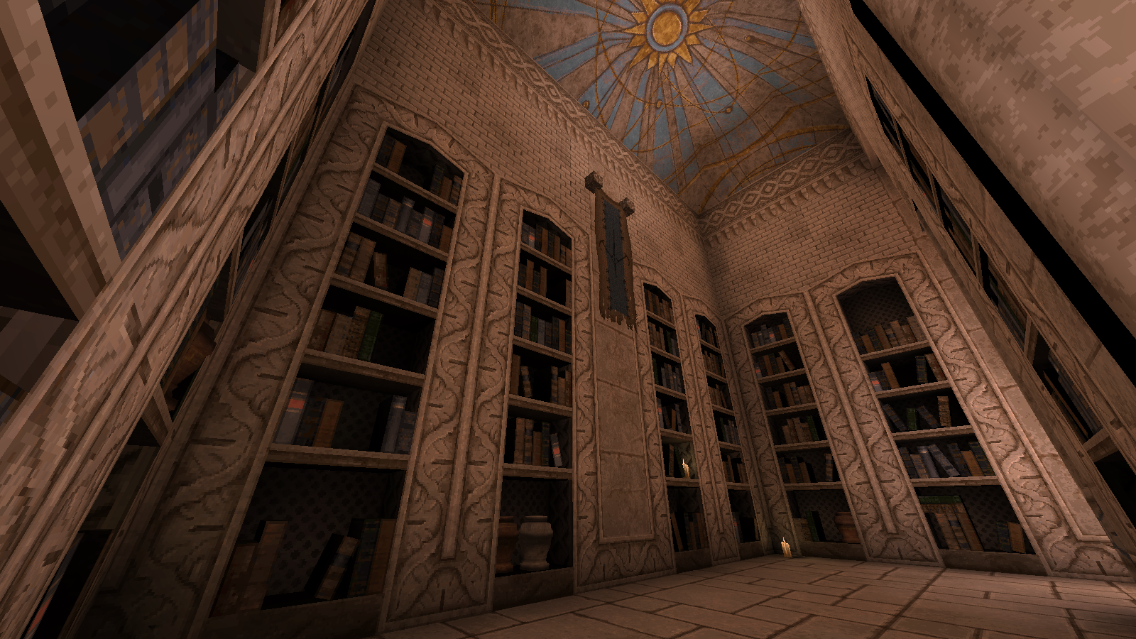 For E2M5, The Watchtowers, we went back in and added thematic scholar prop detailing to the level as you can see with the below screenshot. In addition to more props and reading alcoves, we made some minor terrain adjustments, and a soundpass: