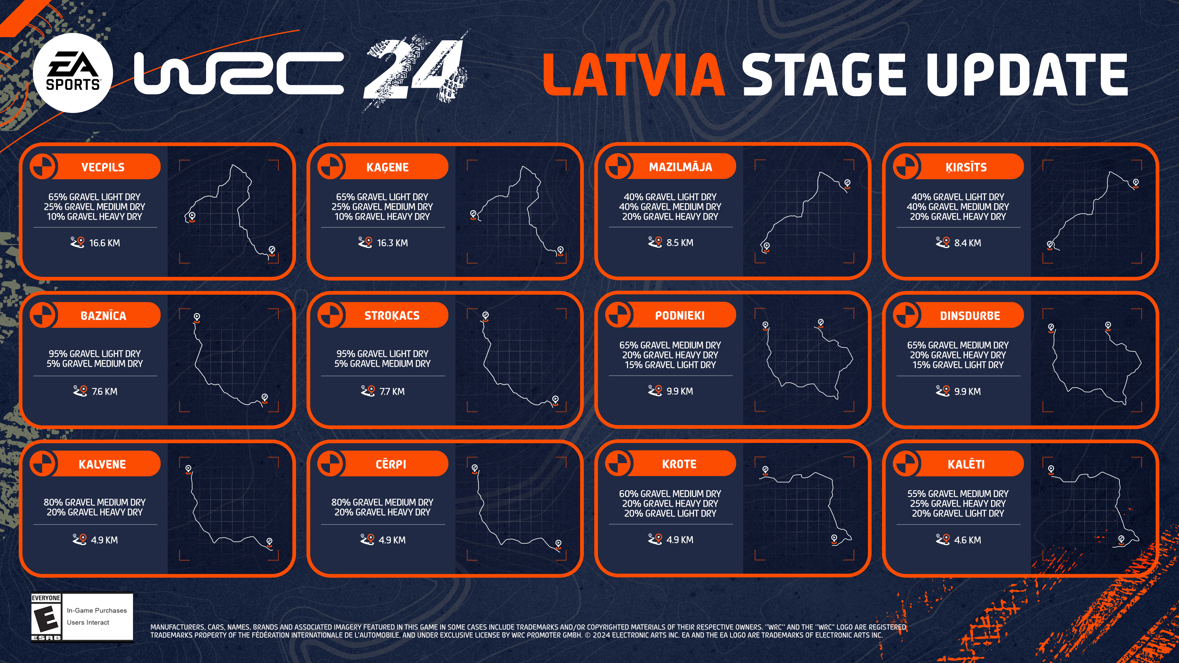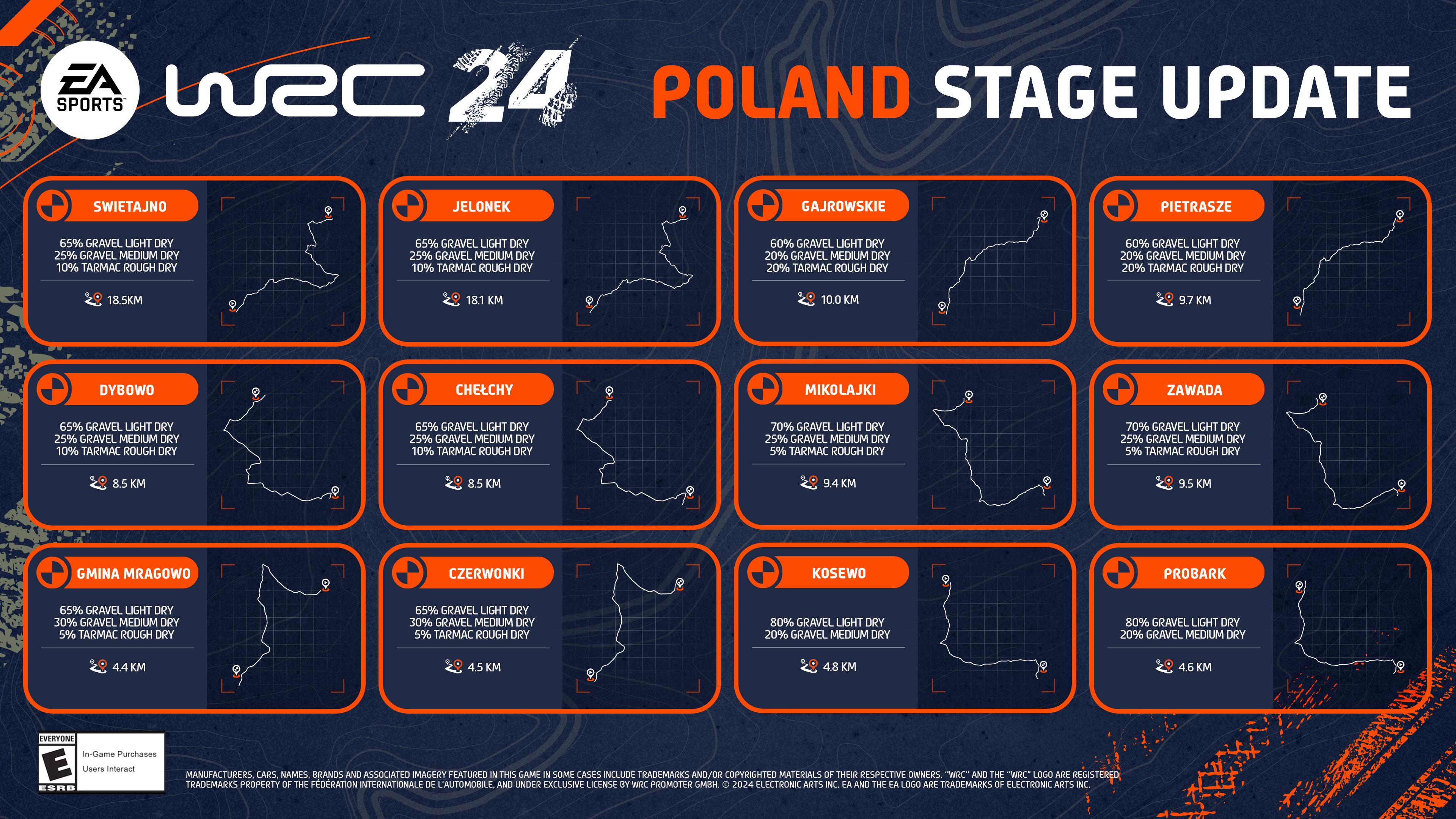 To further enhance one of the most definitive rally experiences we have made, we're adding two brand-new locations: WRC Orlen 80th Rally Poland and WRC Tet Rally Latvia.