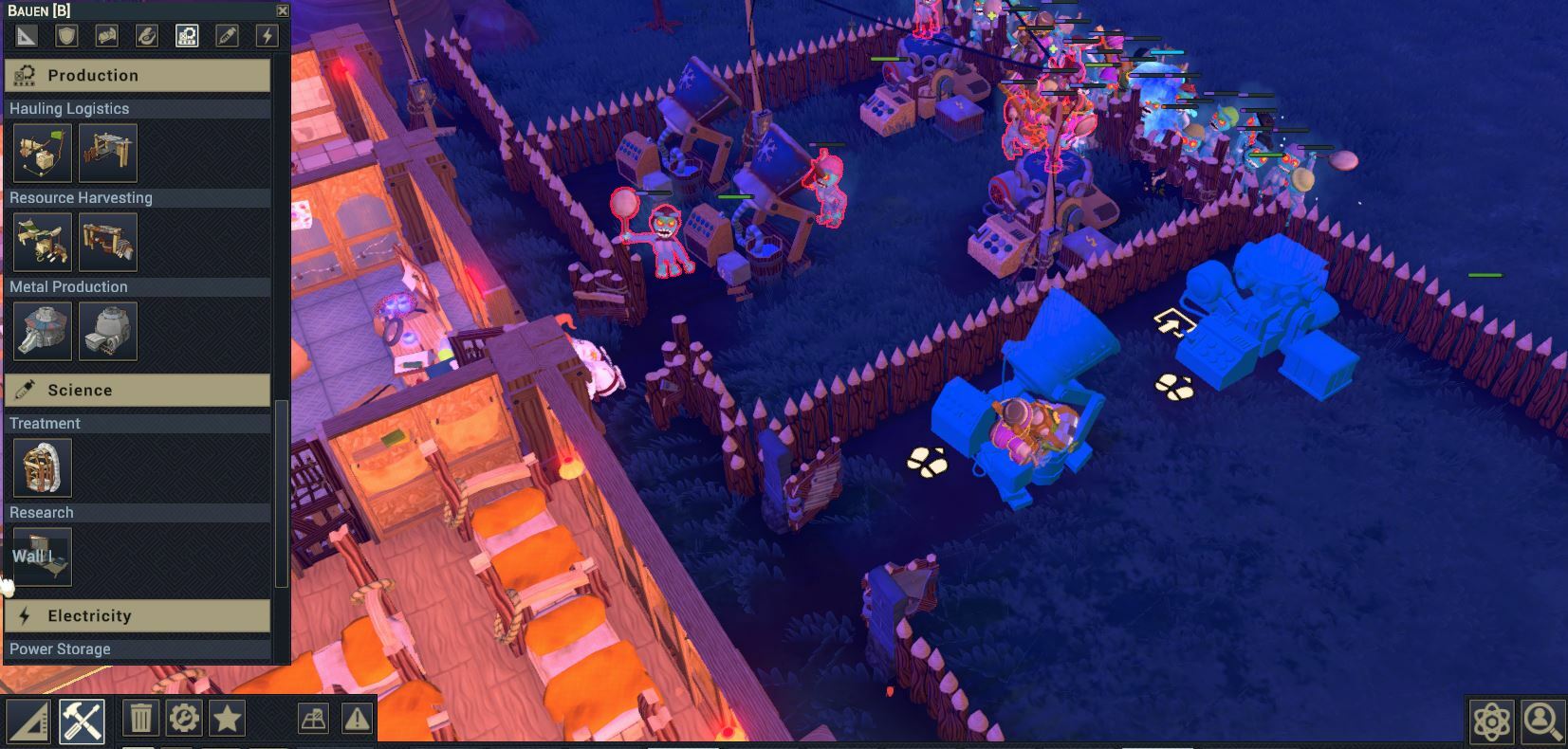 - More research, we are planning to fill up the tech-tree significantly with enhancement research that improves your buildings permanently, like +5% health to all your fences or even trade-offs where you can boost the damage of all your towers, but they will consume more electricity, permanently.