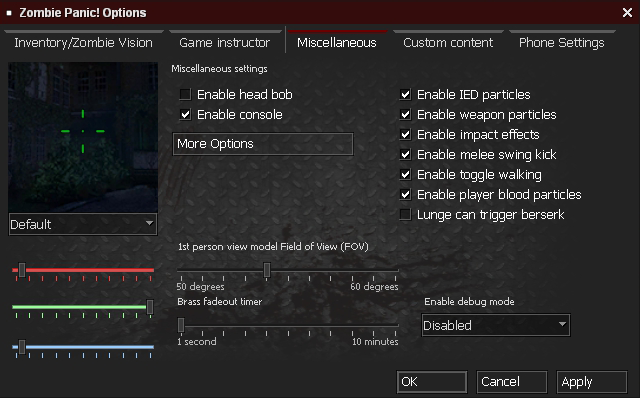We've updated and added some optional features and in-game commands that you can configure to your preference in Zombie Panic! Options. Those include: ability to change the color of the item's glow, sort the scoreboard by score or kills, choose the destructibles color in Zombie vision, and more.