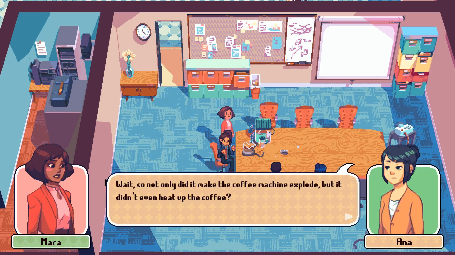 Mara, the CEO and founder of Nanovolt, a struggling technology startup that's looking for funding. She finally locks down a major investor and prepares her final pitch... that is until she clashes with their VP, Rinden, the morning before the presentation.