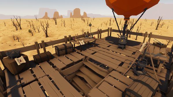 Now you're the sole survivor, out of supplies and clinging to what's left of your airship as it drifts down towards the sand. You've spotted some wagons in the desert ahead and have just enough fuel to make it there. You might find supplies, and if you can scavenge enough to get back into the air then you might be able to limp from location to location and rebuild enough to fly far west, solve the mystery and stop the monsters...