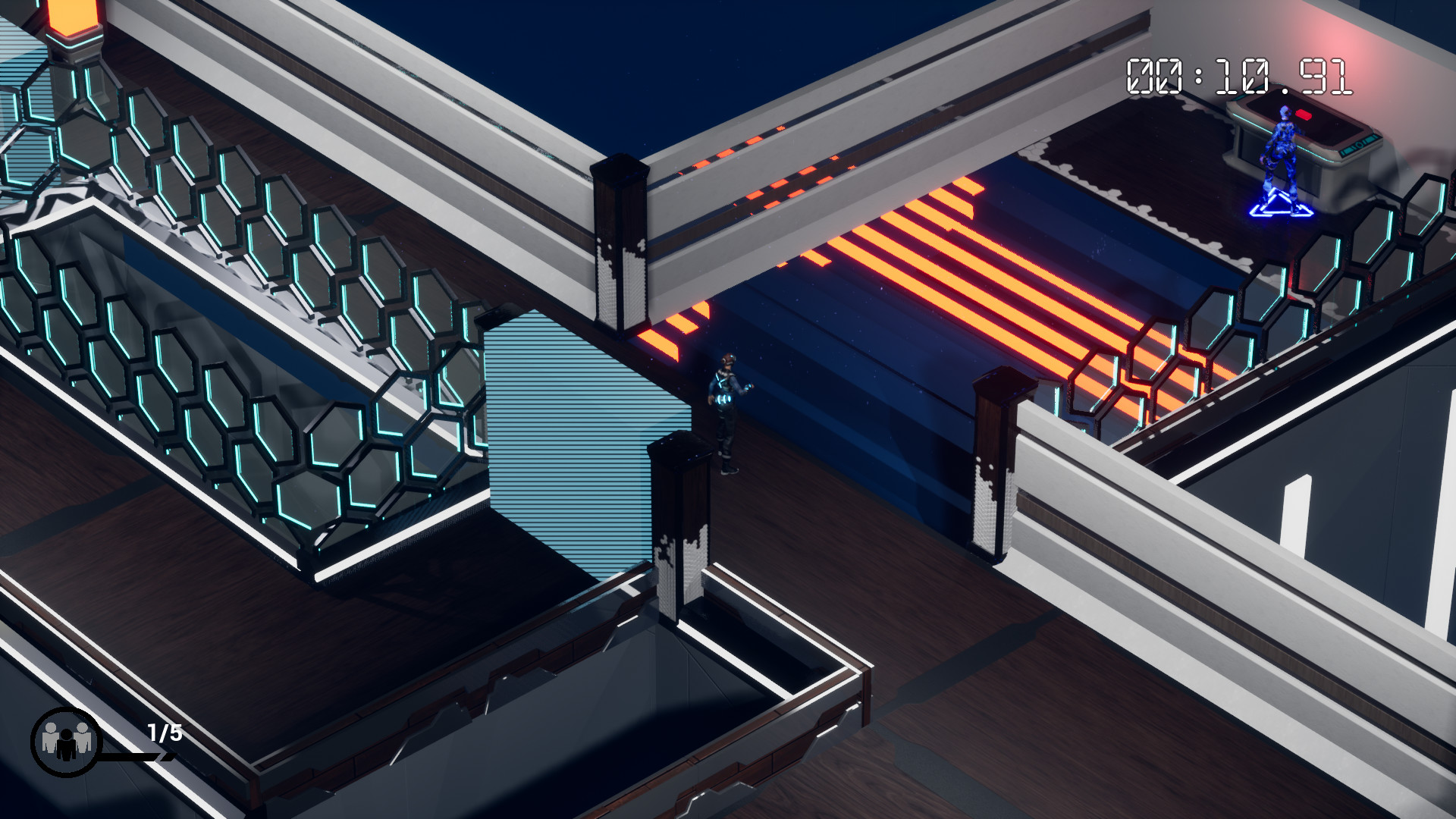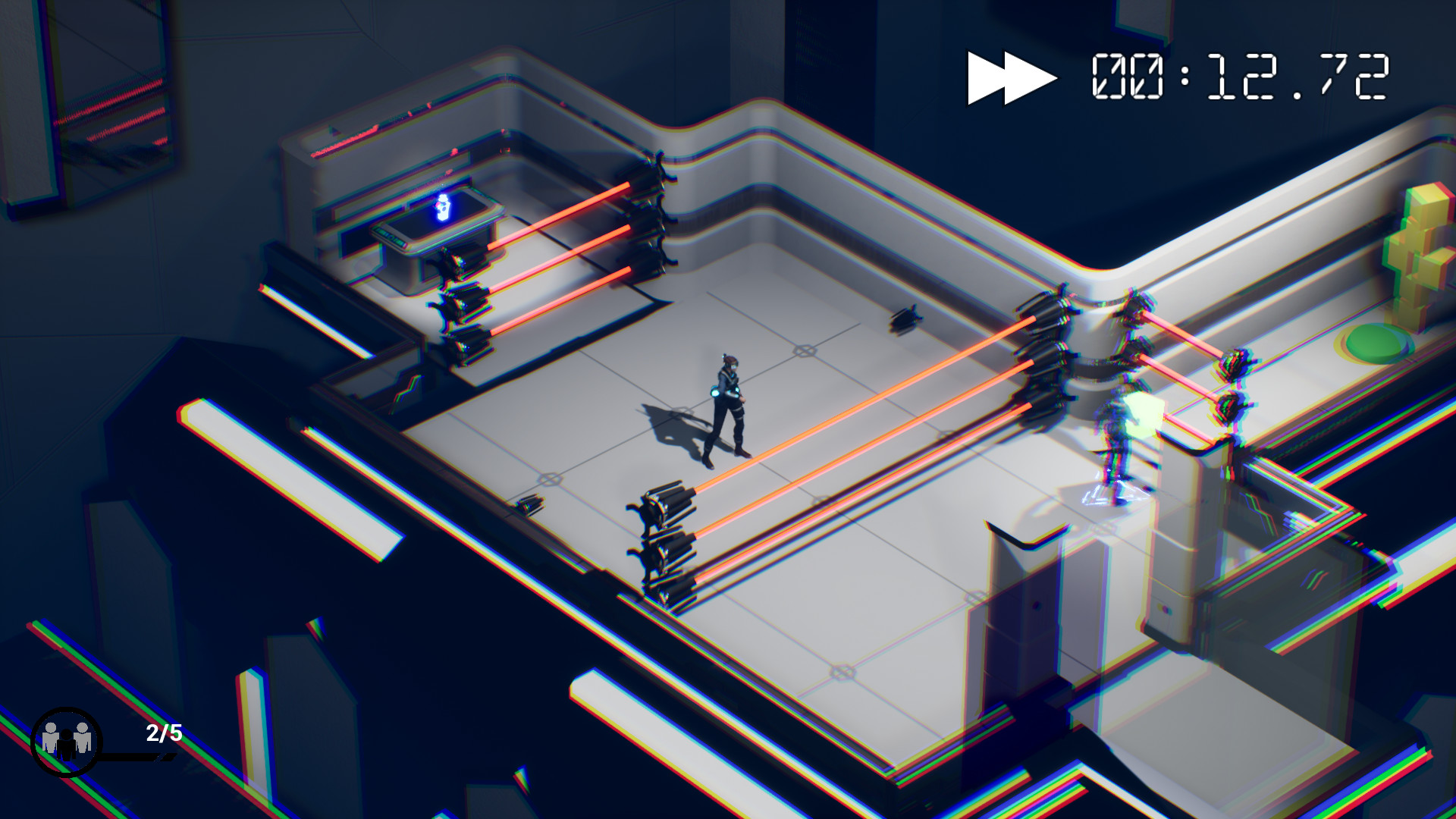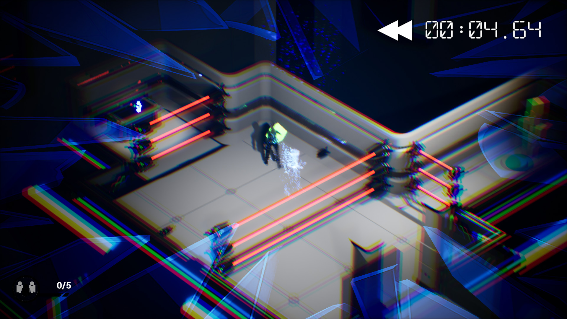 The player has the ability to rewind or fast forward time. Every time you travel backwards in time, a time-clone is created that will echo your previous actions. If you press a button and then rewind, your clone will now press that same button. This allows you to be in two places at once, enabling you to solve unique and interesting puzzles.