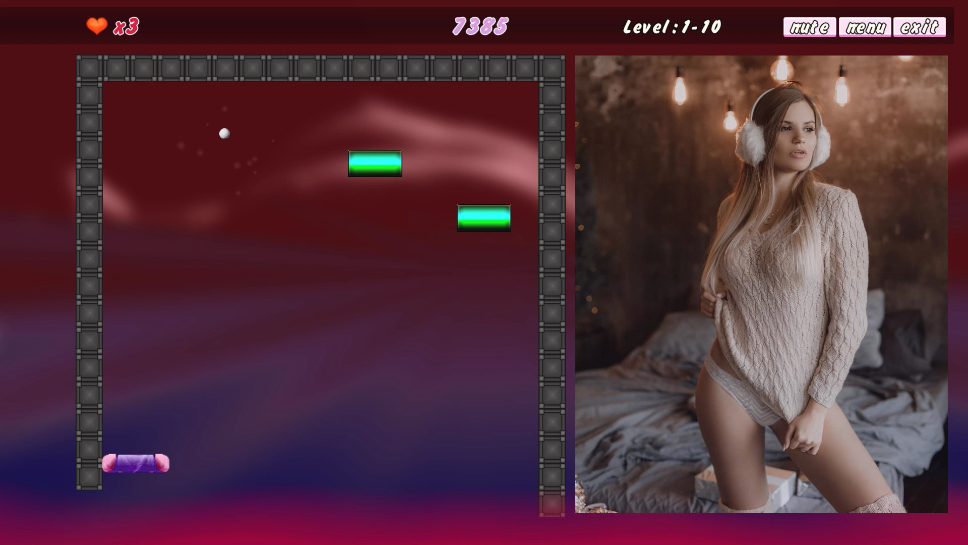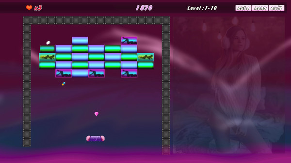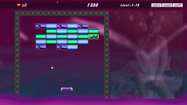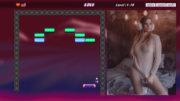 Classic Arkanoid wich Adult content. Beautiful and sexual the girl pose. Break stones and open the photo with the beautiful girl. The more it is broken pebbles - the better it is visible the sexy girl. Simple gfx and classick gameplay and sexy girls. Use mouse for control game.