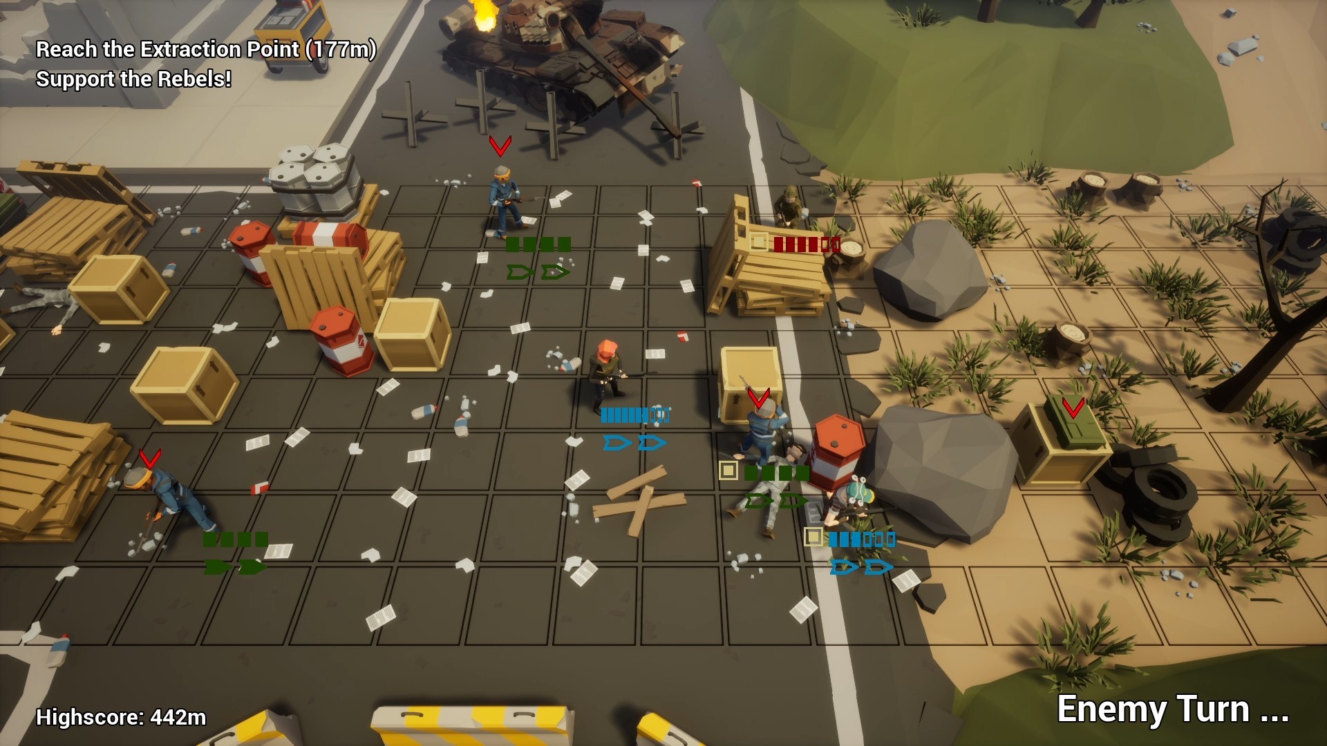 Run For Cover is a turn-based strategy game where you control a team of soldiers traveling through hostile territory. The world is procedurally generated as your team moves forward and presents unique challenges every time you start a new run. It is filled with quests, enemies and distinctive areas. Your soldiers gain experience with every step they take and unlock powerful abilities. Your soldiers can find new weapons and armor to increase their chances for survival.