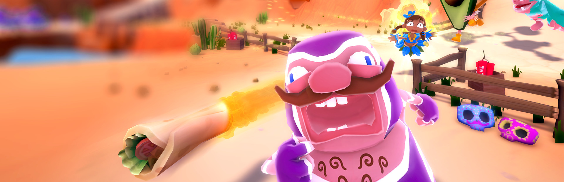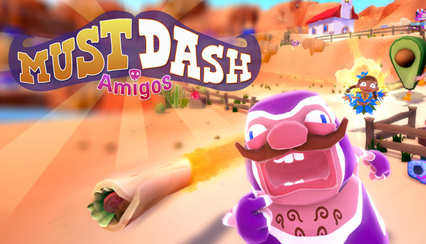 Erlebe einen Loco-Top-Down-Battle Racer mit Pi?ata Stampedes, Avocados und Chaos f?r bis zu 4 Spieler! Must Dash Amigos ist ein humorvolles, familienfreundliches Spiel mit Steuerelementen, die so einfach sind, dass jeder spielen kann!
