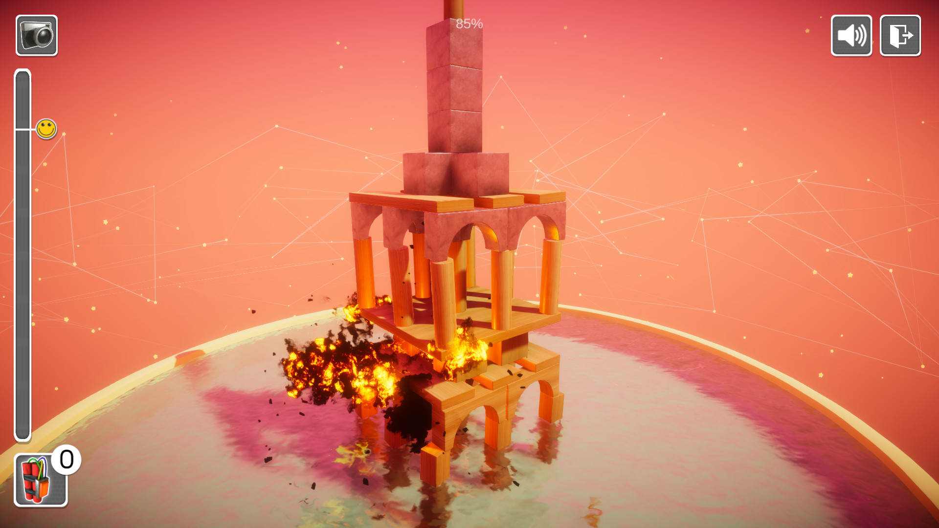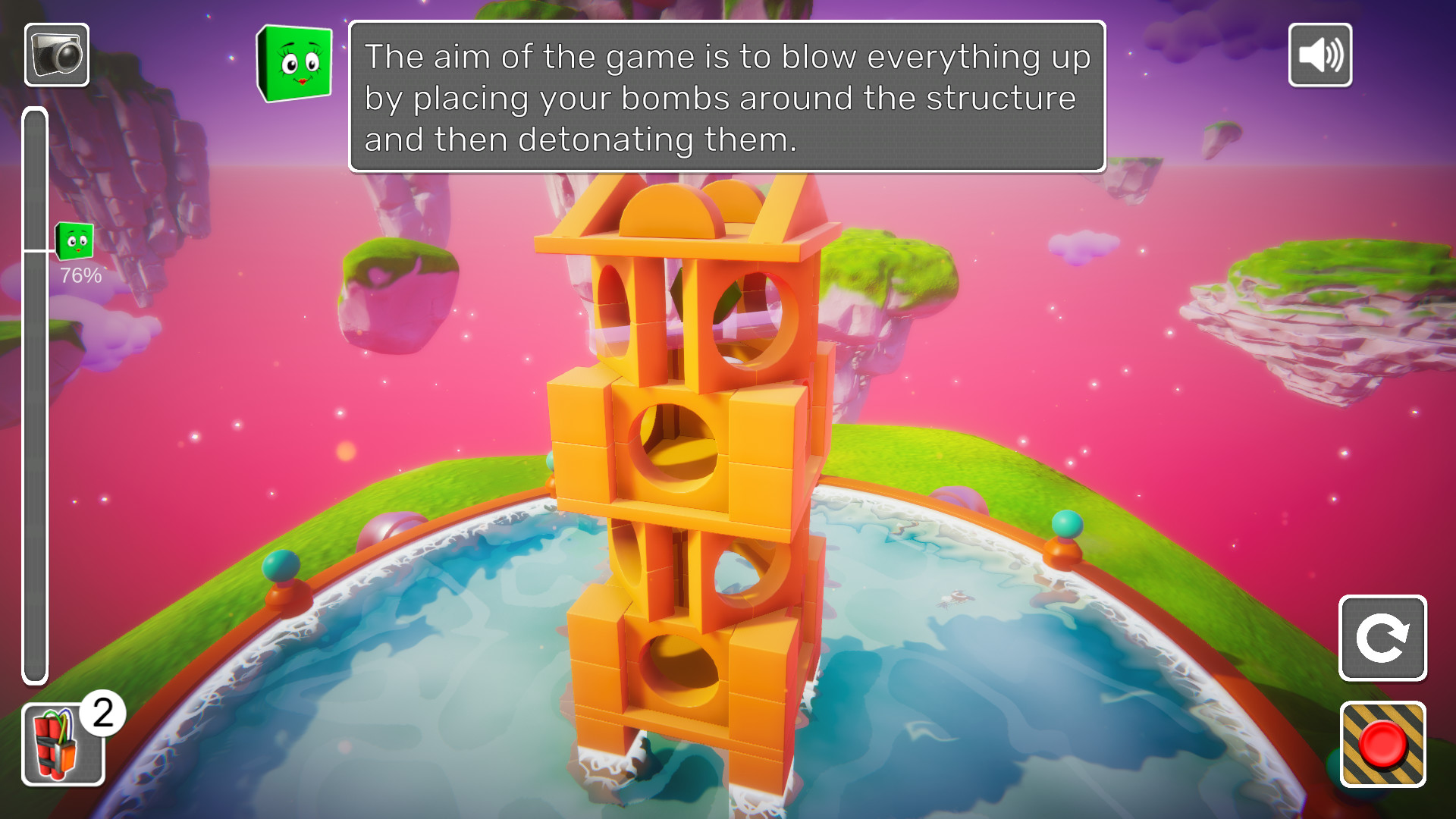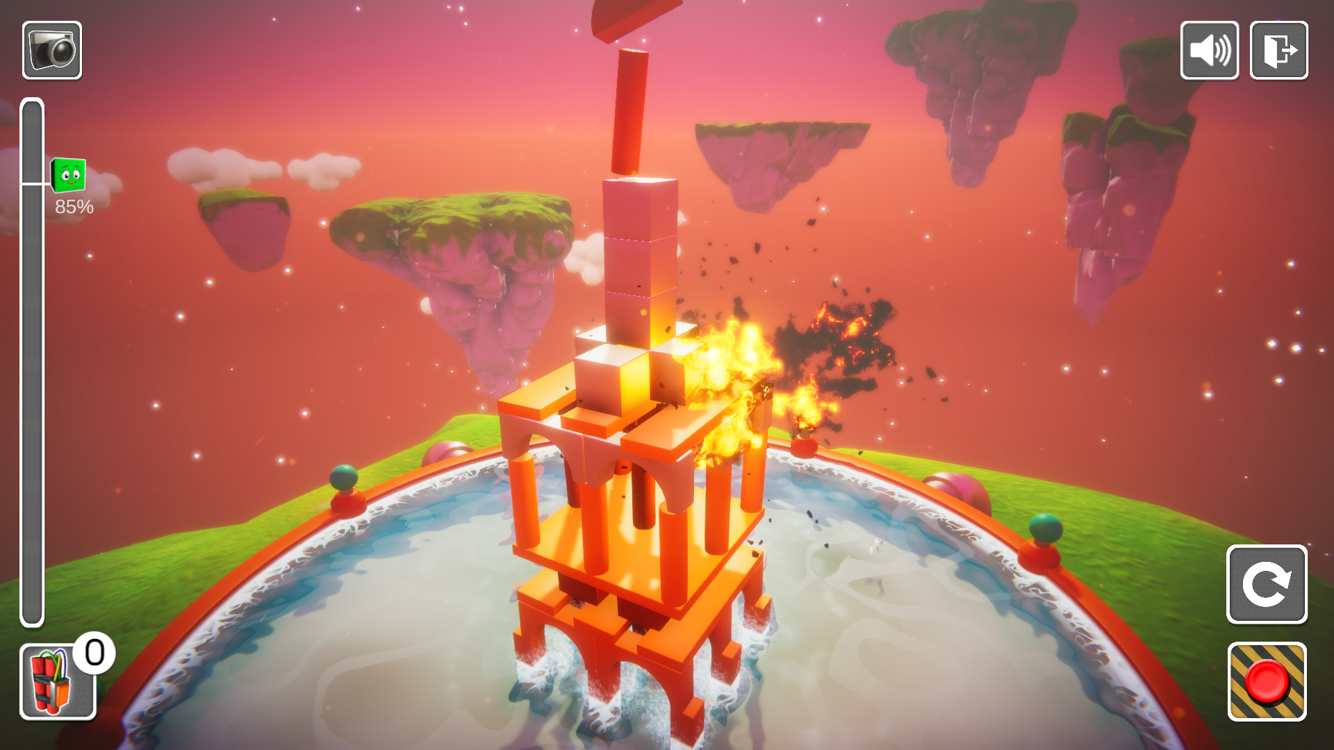 Genie?en Sie stundenlangen zerst?rerischen Spa? mit vielen zu l?senden Levels, angefangen von einfachen Strukturen bis hin zu anspruchsvolleren R?tseln, bei denen Sie verhindern m?ssen, dass der Edelstein das Wasser ber?hrt, oder indem Sie die m?rrischen blauen Bl?cke versenken.