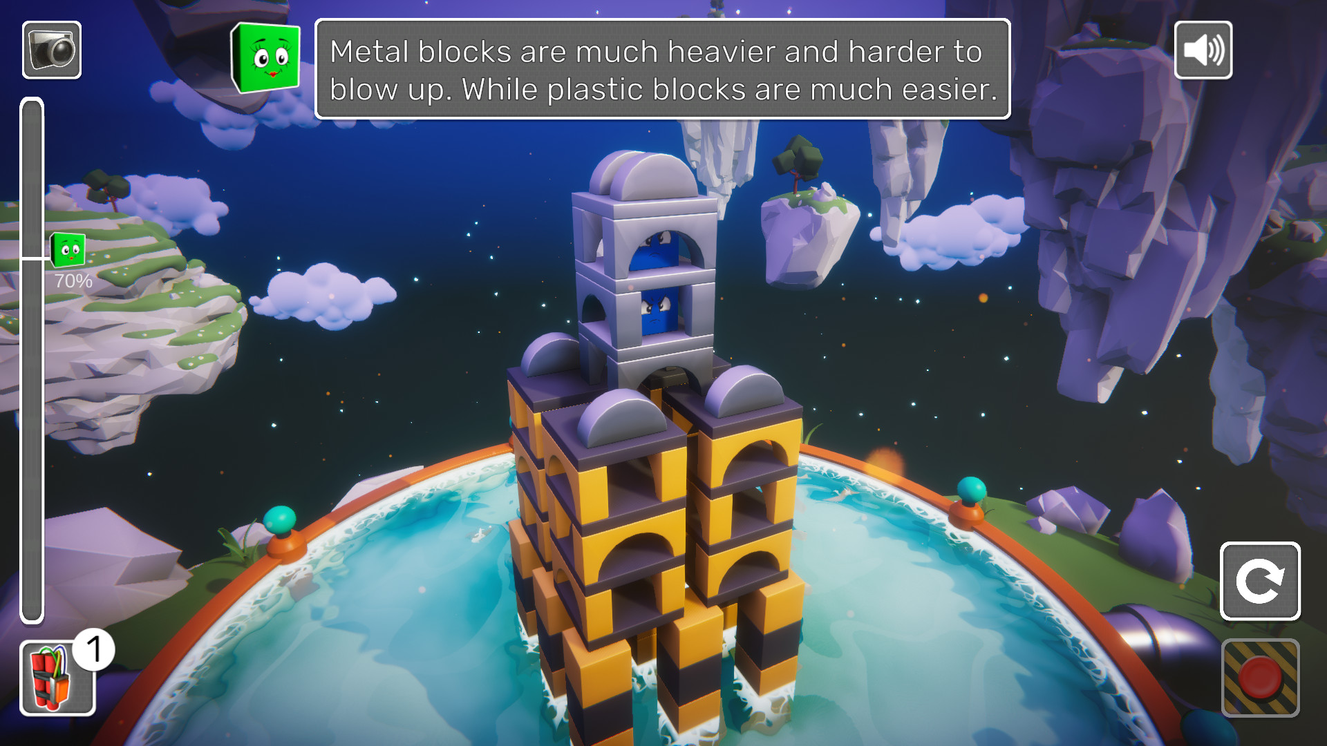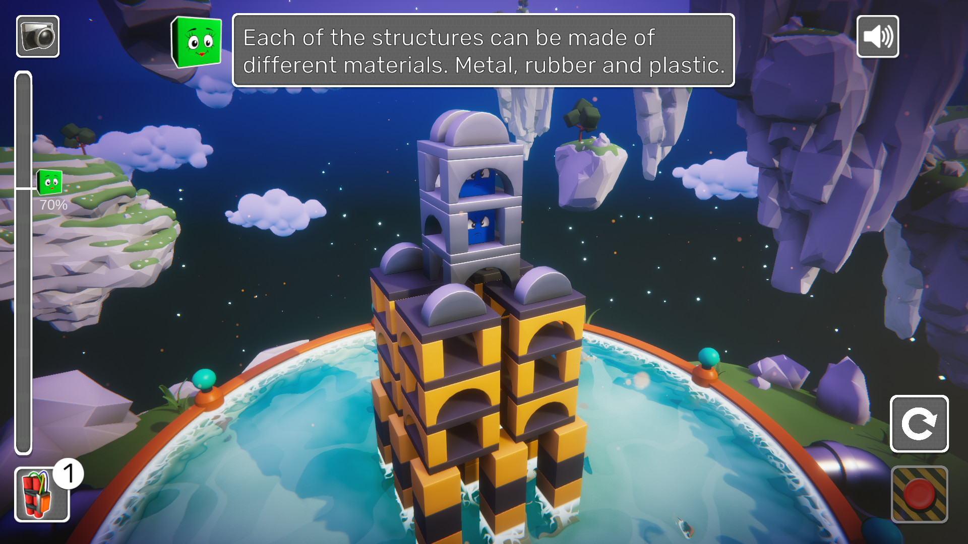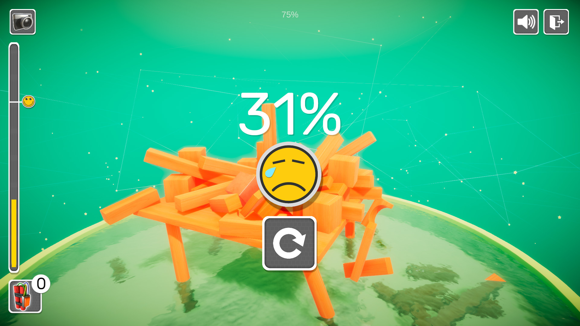 Genie?en Sie stundenlangen zerst?rerischen Spa? mit vielen zu l?senden Levels, angefangen von einfachen Strukturen bis hin zu anspruchsvolleren R?tseln, bei denen Sie verhindern m?ssen, dass der Edelstein das Wasser ber?hrt, oder indem Sie die m?rrischen blauen Bl?cke versenken.