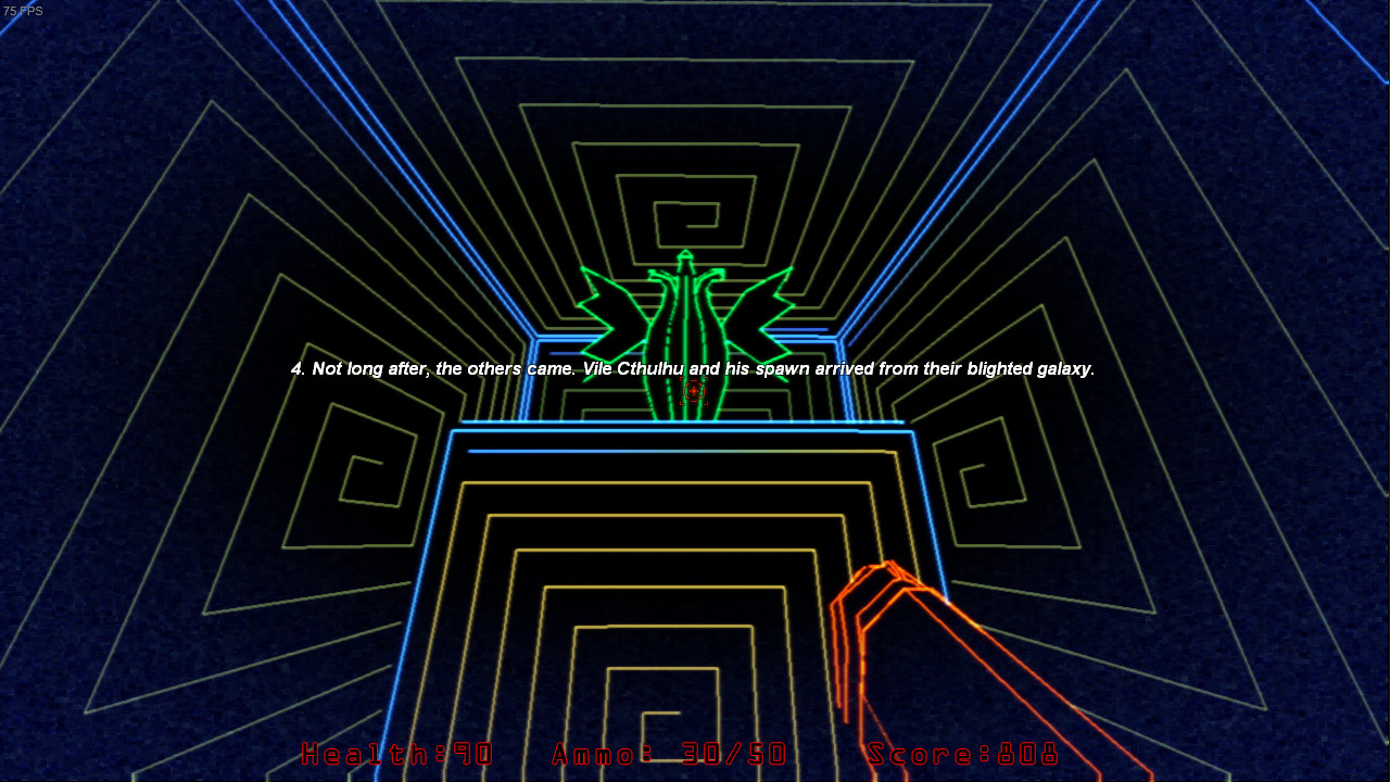 Paradox Vector is a kind of homage and sequel to "At the Mountains of Madness" by H.P. Lovecraft. The story is revealed slowly through various locations and interactions throughout the games many levels. The gameplay takes place in immense cyclopean structures where you must face dangers from the Ancient Ones and their Servitors, as well as navigate the structures' non-euclidean geometry.