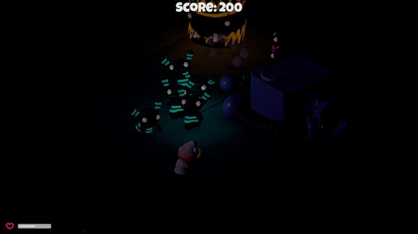The floorboards, you hear them squeaking and cracking, the voices are all around you, you are surrounded, and trapped! You are in Nightmare, a classic arcade 3d top-down shooter taking place in your bedroom, in the darkest and scariest hours of the night. Oh, and the voices you hear, they are malignant noises coming from evil clowns and horrid dolls, but that won't stop you, will it? Now go, investigate, all you have is... well... a toy pop gun. And so it begins, the seeking of your own purpose, or, if you fail... ...your own death!