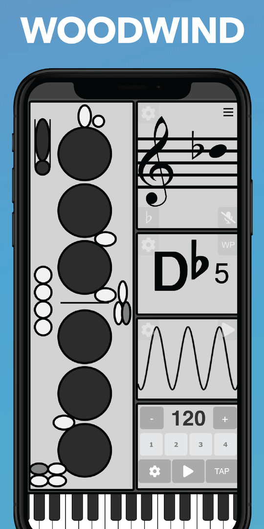 ? Tippen Sie auf Holzblas- / Messingventile, um sie nach oben oder unten umzuschalten