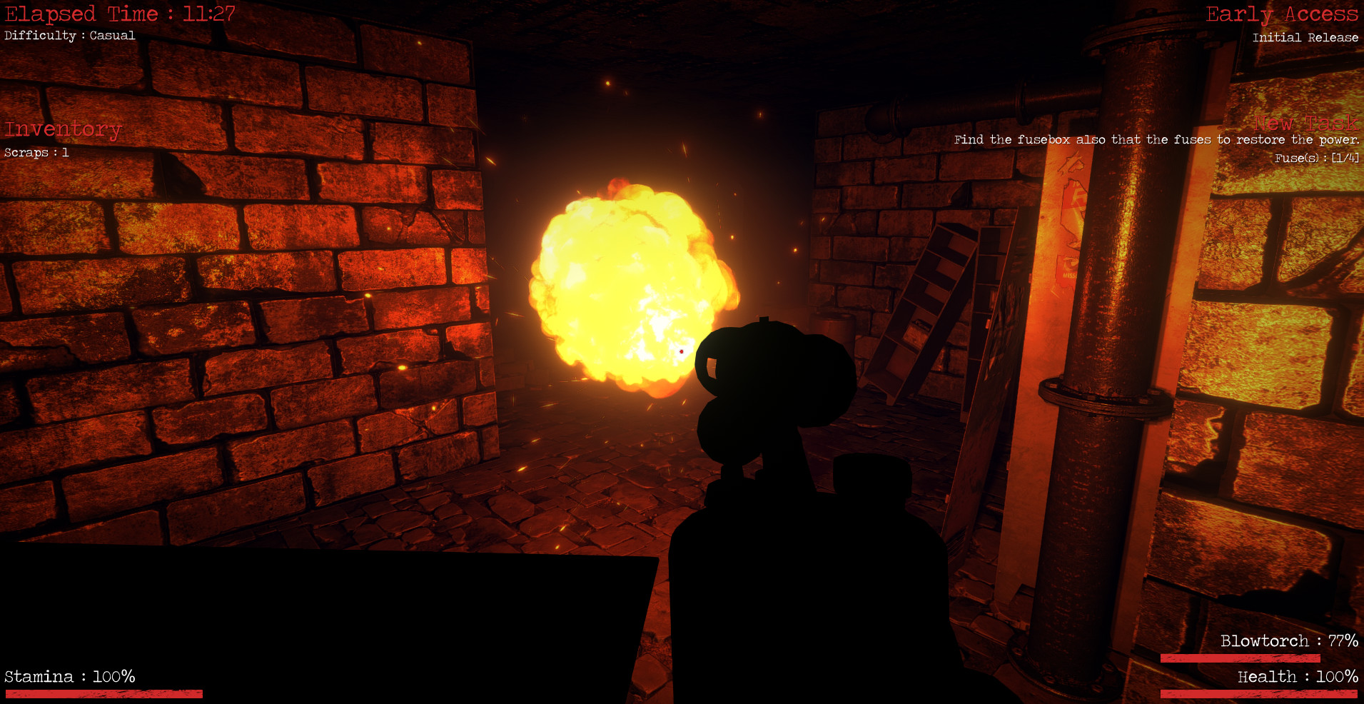 Wander in the corridors where the darkness will not be your only enemy.Take everything you can find to survive, don't let yourself be trapped, do not get lost.