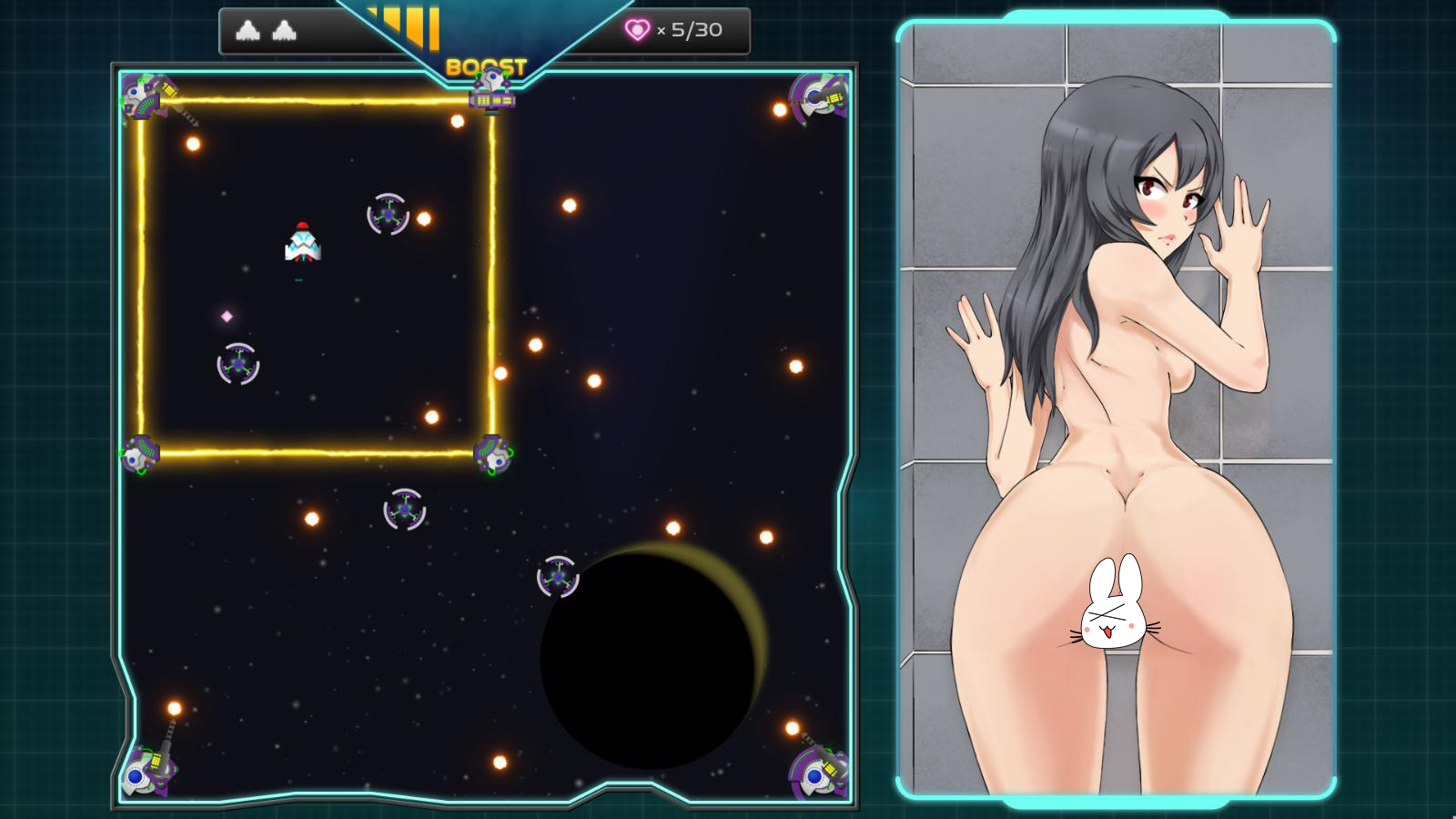 Shuttlecock-H is for all people who love fast action and cute girls. You have to collect hearts while avoiding bullets, lasers and other spacecrafts. Unlock more levels and naked pictures with your skill, persistence, and passion for seeing women... happy.