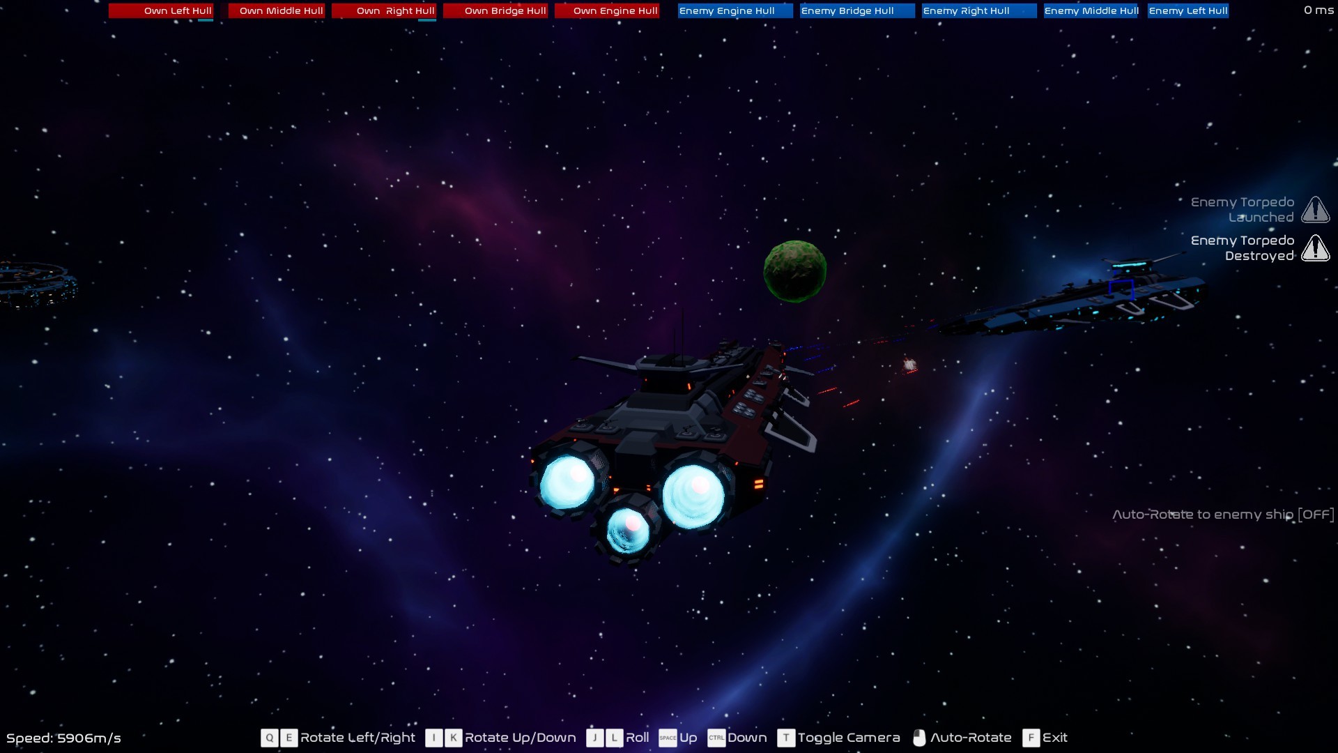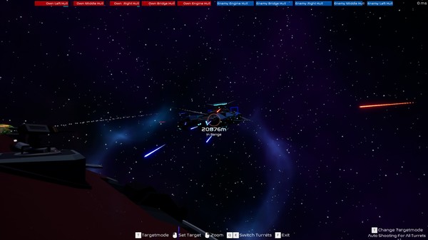 At the start of each round, you can customize your cruisers turrets, fill your hangars with lots of different smaller fighters and choose between numerous upgrades to give you the edge in battle. Once the round starts, move your capital ship freely in all three dimensions, shoot the turrets manually or use the ships integrated targeting systems to just focus which points of the enemy ship to focus. Control the energy distribution of your ship, raise the shields of each section of the ship individually, or direct energy to the engines, life support or weapon systems. You can also explore the giant interior of your capital ship while running to a hangar to join the battle with a smaller fighter and board the enemy ship and sabotage their generators, shields or engine.