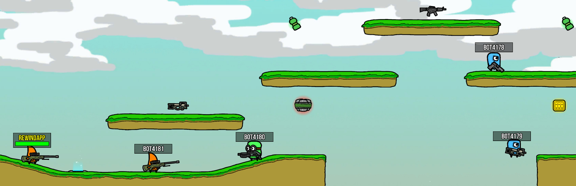 Minions Battle ist ein 2D Deathmatch-Spiel. K?mpfe gegen deine Freunde oder Bots auf 2 einzigartigen Karten.