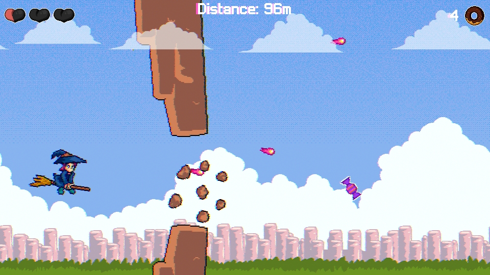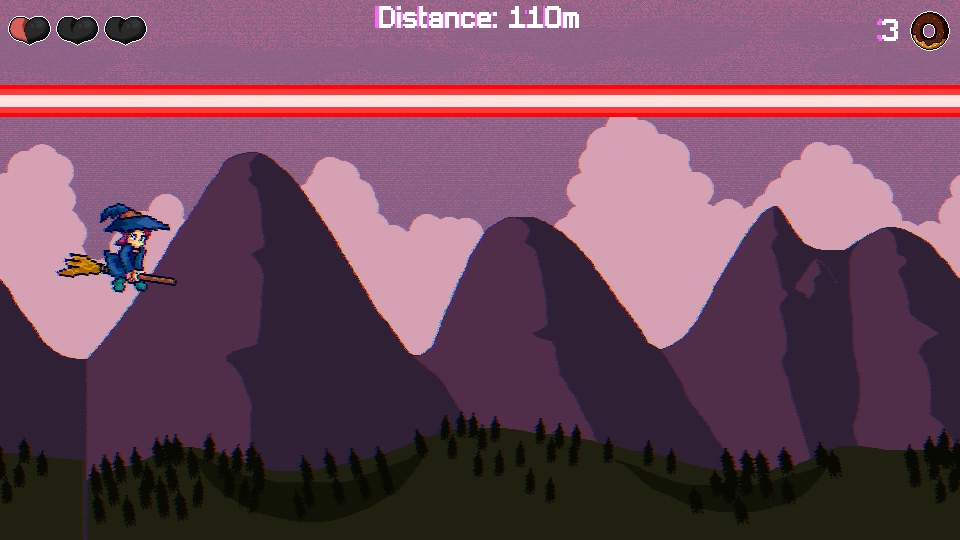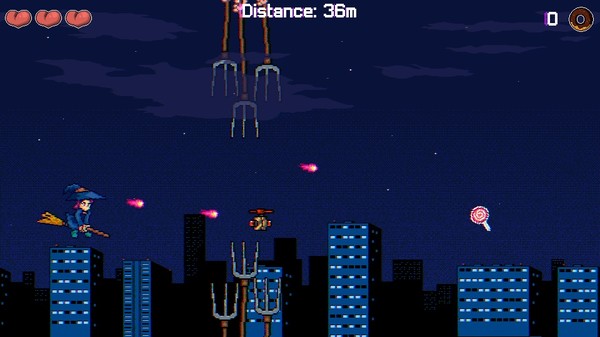 D.H.Witch - 2d shooter about the difficult fate of the little witch, avoid obstacles, beware of traps and dodge flying crows and copters flying by.