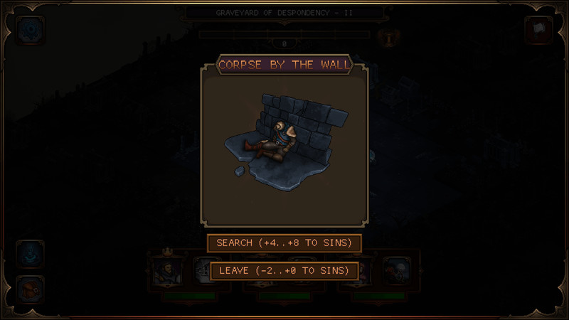 Depending on your choices, the sinfulness of your team will go up or down. If it's high ? expect tougher enemies. Whatever might be buried there, is it wise to desecrate those graves? Every decision you make matters, and on the road to the next Sin Lord you will have many opportunities to choose poorly.