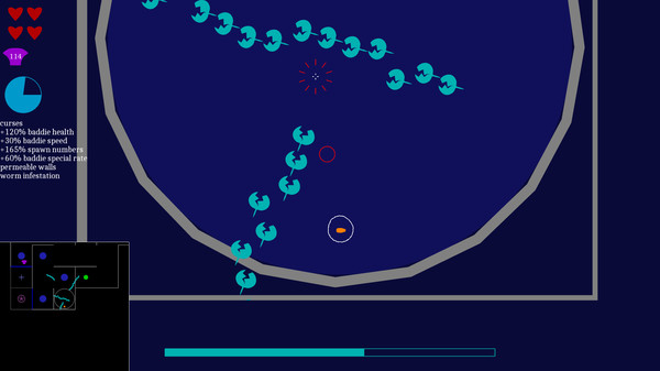 This highly randomized action roguelike is all about strategic positioning and using powerups to their fullest extent. Each upgrade you get is designed to make you play the game differently; adapt or die!Features so far include:Over 100 unique powerupsEnemies with randomized abilitiesThousands of battle arena layouts3 levels with unique bosses